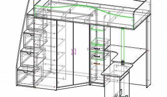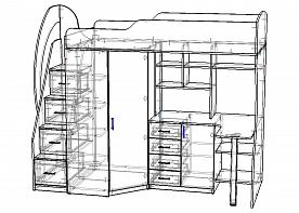 Кровать-чердак со столом и шкафом Дропс-2 BMS