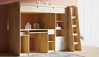 Детская кровать-чердак Миф 11.4 с полками BMS