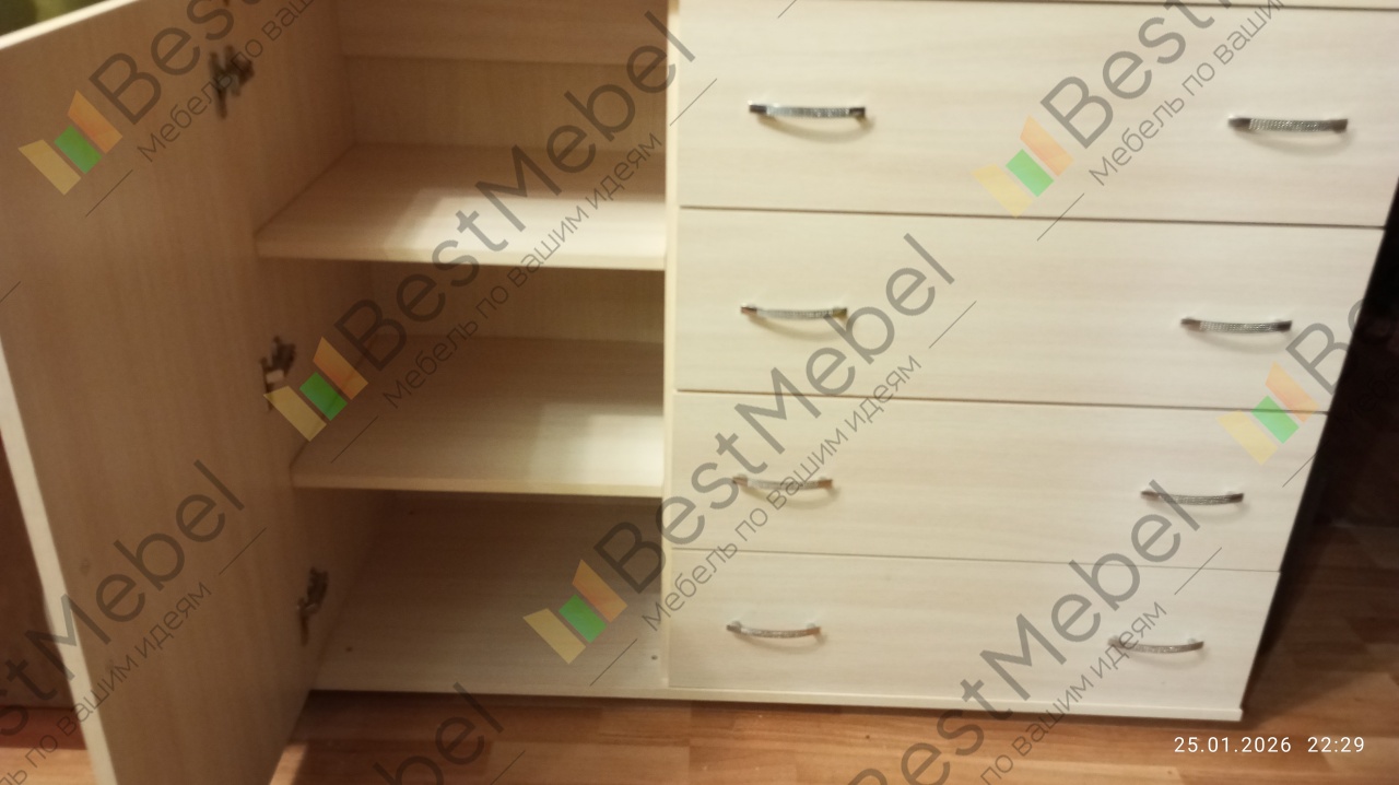 Комод отличный. Всё ровненько сделано, все комплектующие есть. Доставка вовремя. Рекомендую.