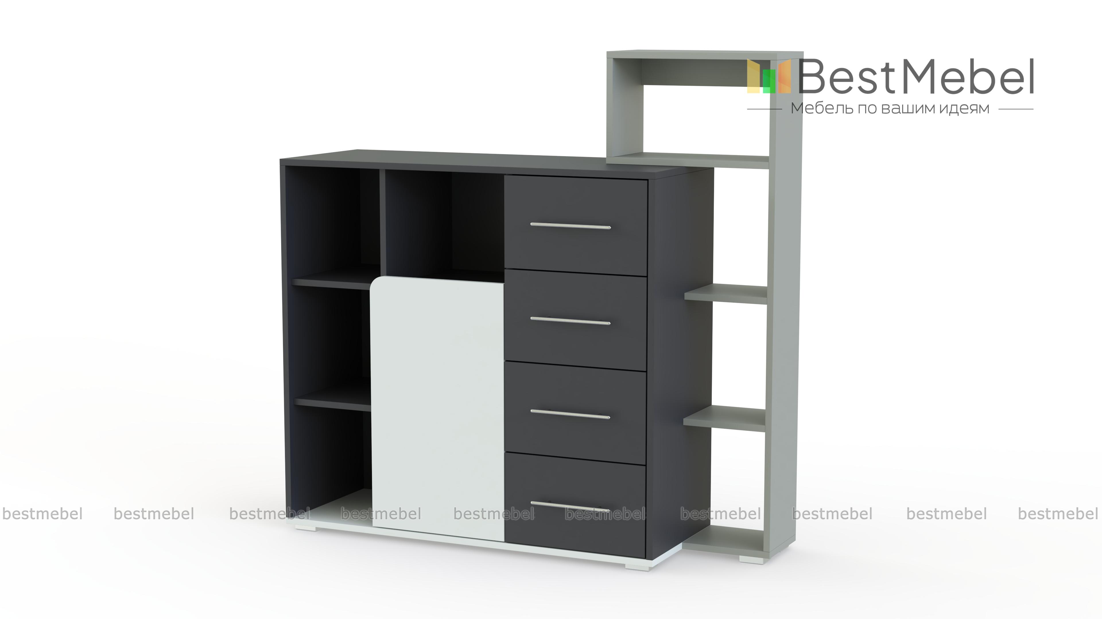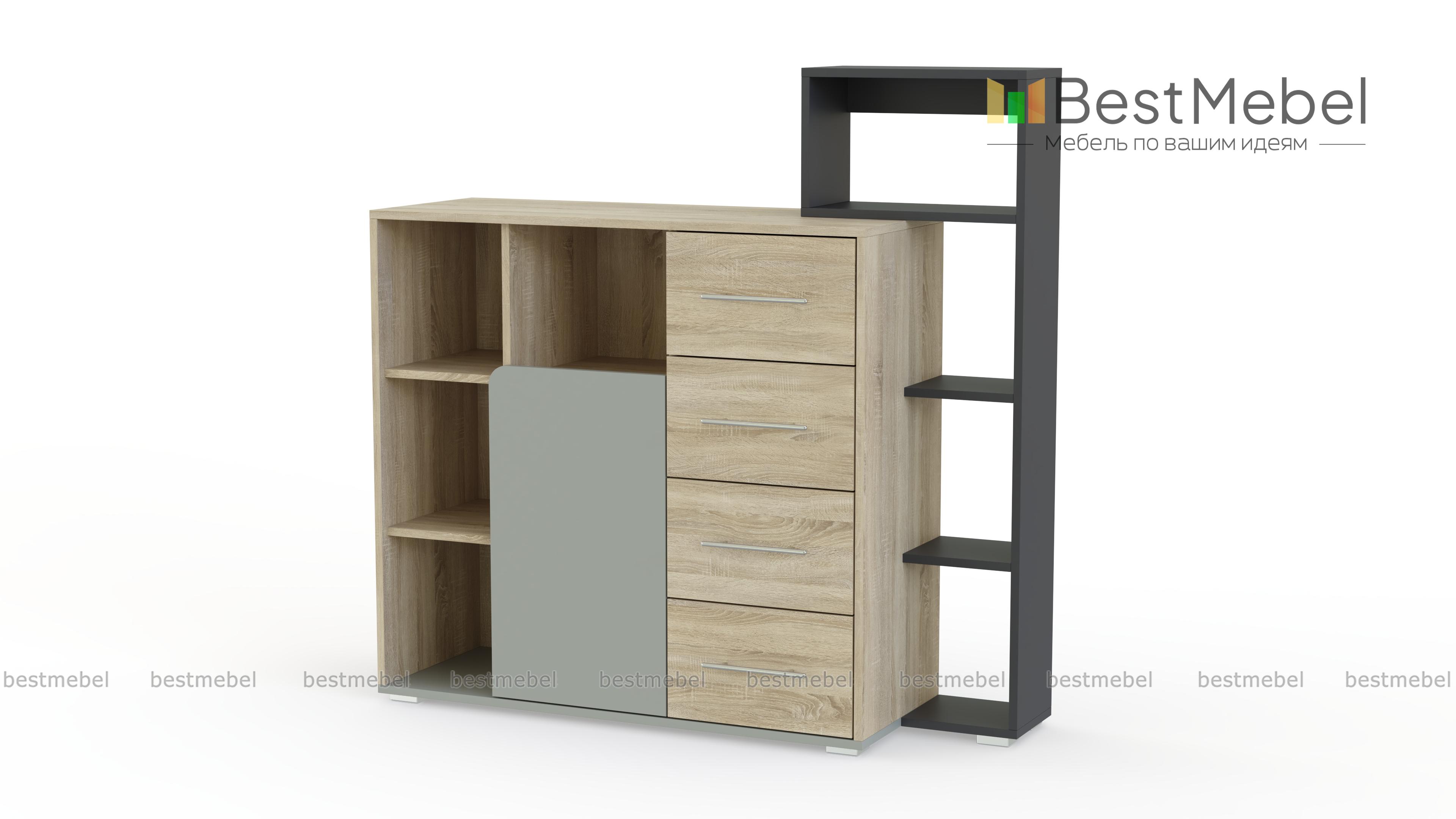 Комод Молодежный Бруно BMS – отличный выбор для динамичного интерьера комнаты современного подростка. Выполненный из экологичных материалов, креативный комод гармонично впишется в меблировку и с легкостью разместит книги, канцелярские принадлежности, игры и множество мелочей. Модель, оборудованная четырьмя выдвижными ящиками, распашным отделением, нишами и надстройкой с открытыми полками, сочетает нейтральные оттенки с контрастными вставками. Купить комод Молодежный Бруно BMS приглашаем в наш интернет-магазин.