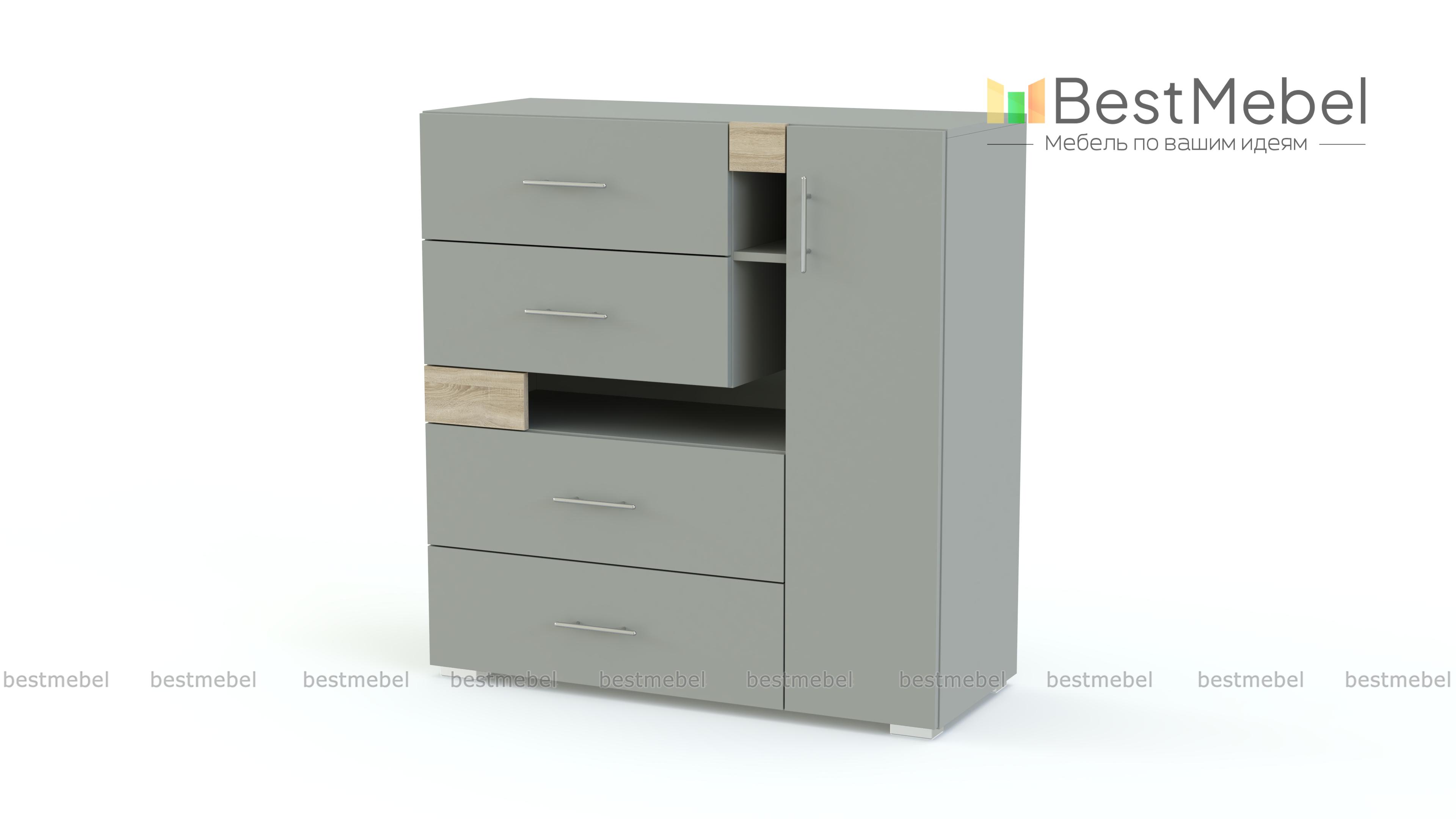 Комод Next NX11 BMS благодаря оригинальному дизайну станет гармоничным дополнением современного интерьера и отлично впишется в молодежные комнаты. Компактная, но вместительная, модель порадует владельцев разными типами отделений – выдвижными ящиками разных размеров, распашным отделением и нишами. Ярким акцентом в домашнем интерьере станут асимметрично расположенные элементы и контрастные вставки. Купить комод Next NX11 BMS и организовать удобное хранение бытовых мелочей вам поможет наш интернет-магазин.