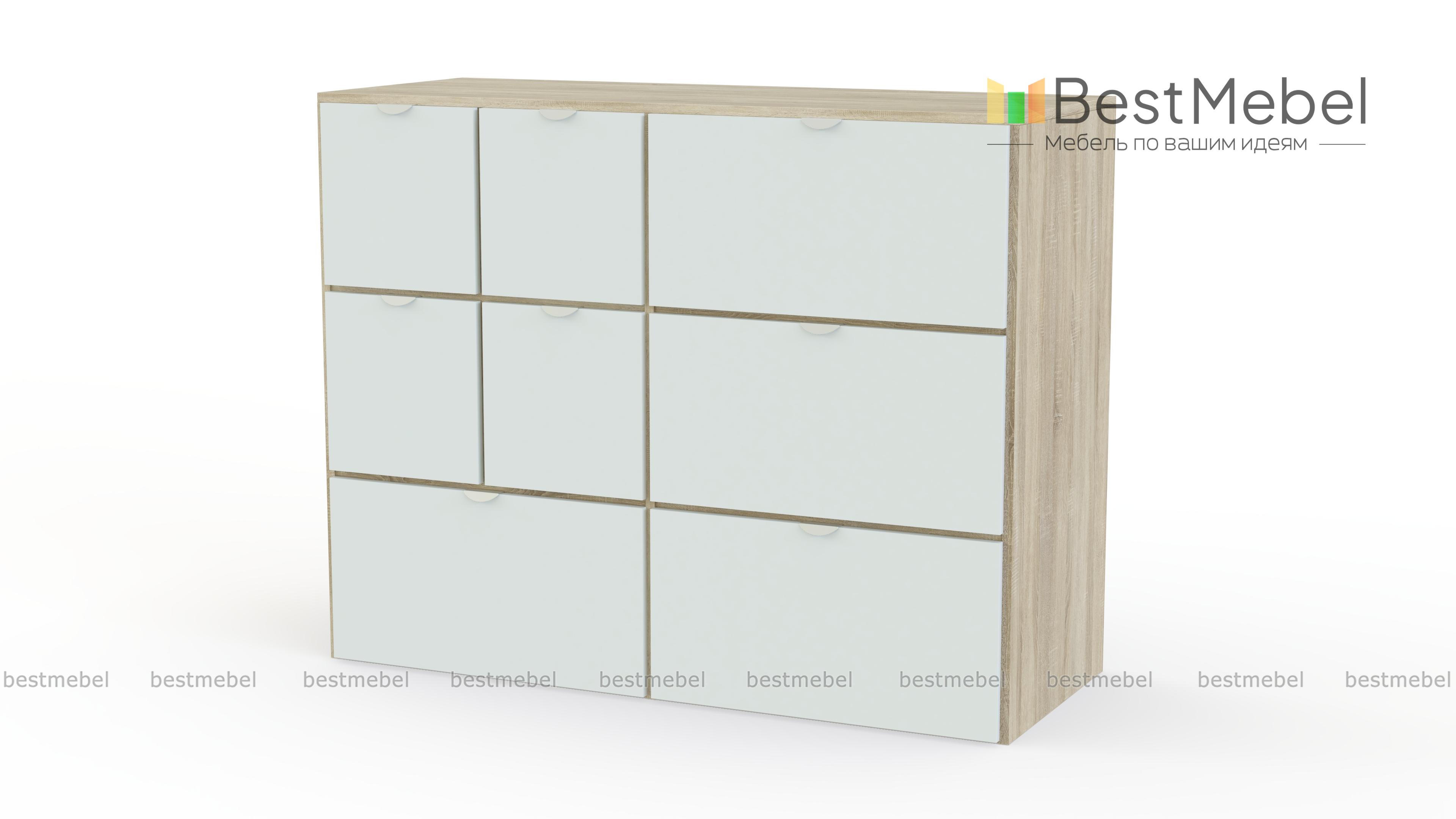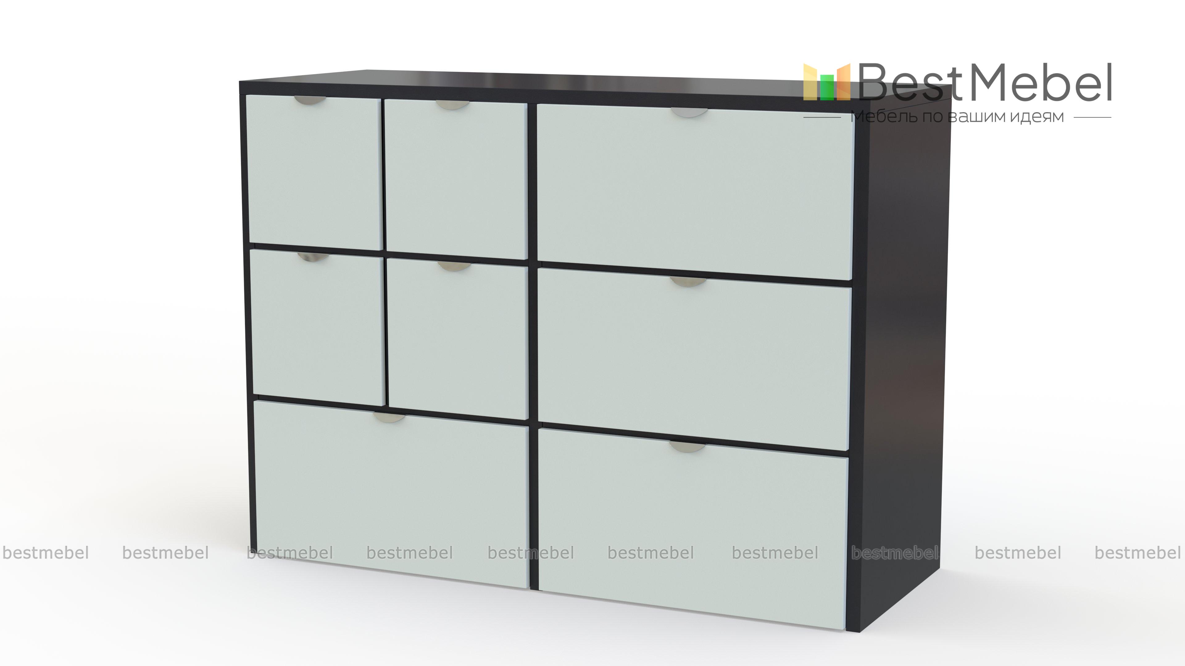 Комод Вистхус Visthus 3 – для тех, кто привык к рациональной организации пространства и порядку в вещах. Продуманная система хранения включает в себя четыре больших выдвижных ящика и четыре малых, в которых найдется место для одежды, аксессуаров, постельного белья и множества мелочей. Светлые фасады, разделенные контрастными вставками, оснащены полукруглыми торцевыми ручками. Купить комод Вистхус Visthus 3 для меблировки спальни, гостиной или прихожей вы сможете в нашем интернет-магазине. Выбирайте мебель в стиле IKEA (ИКЕА) от производителя BestMebelShop!