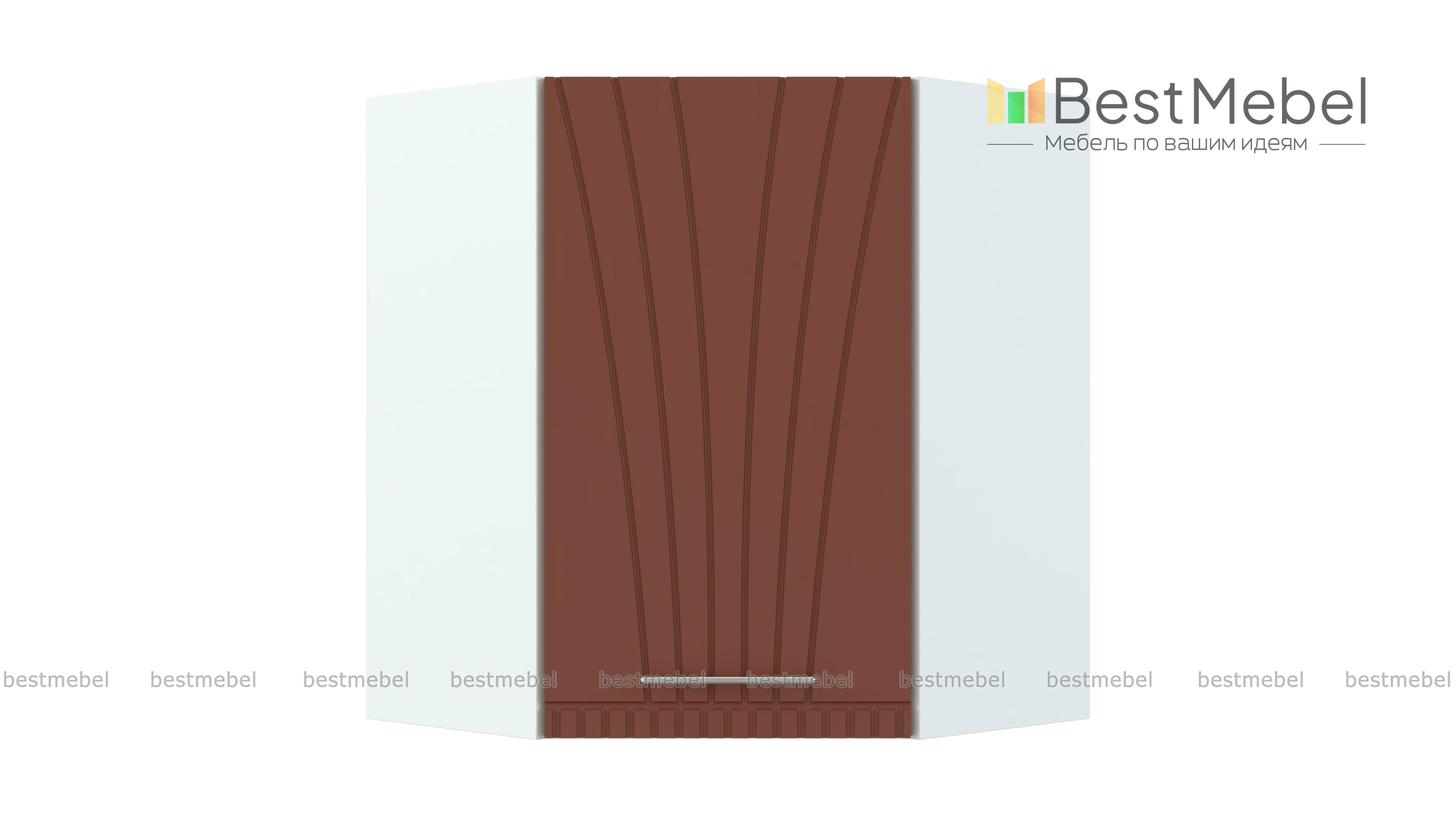 Шкаф навесной угловой Паллада BMS выполнен в форме трапеции и служит для стыковки прямых элементов в модульном Г-образном комплекте. Незаменимый предмет гарнитура, шкаф выгодно использует доступное пространство и экономит полезную площадь. За распашной дверцей располагается особенно просторное внутреннее отделение с полкой, удобное и для посуды, и для продуктов. Эффектный фасад яркого оттенка украшает фрезерованный рисунок в стиле модерн. Купить шкаф навесной угловой Паллада BMS приглашаем по приятной цене в наш интернет-магазин.