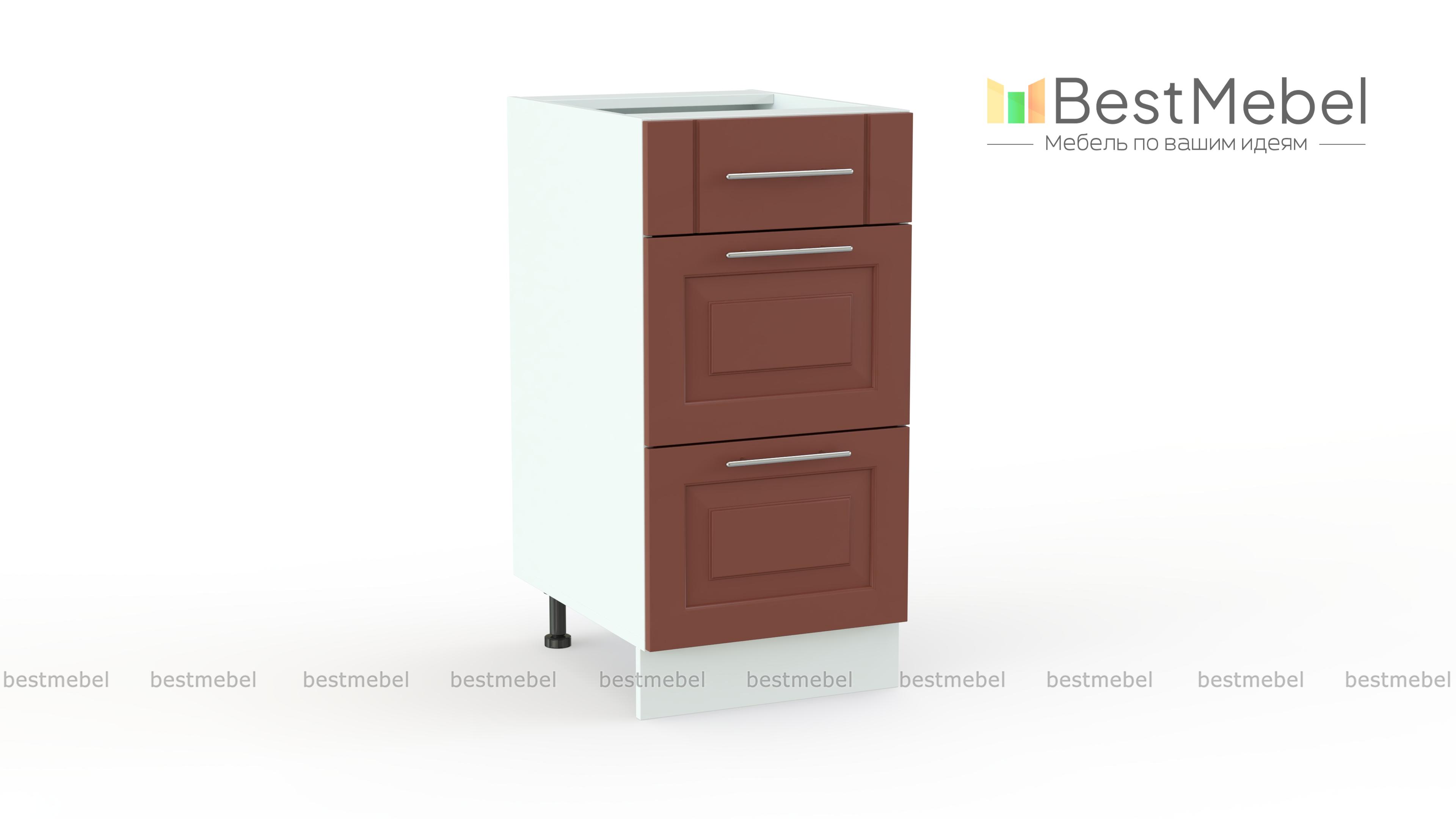 Шкаф нижний с 3-мя выдвижными ящиками Ирен BMS отличается компактными размерами и практичной конструкцией. Модель с фрезерованными фасадами выполнена в теплых терракотовых тонах и органично дополнит другие модули классической серии. Шкаф оборудован тремя выдвижными ящиками разной высоты и удобен для хранения как кухонных мелочей, так и более габаритных предметов. Купить шкаф нижний с 3-мя выдвижными ящиками Ирен BMS приглашаем в наш интернет-магазин по доступной цене.