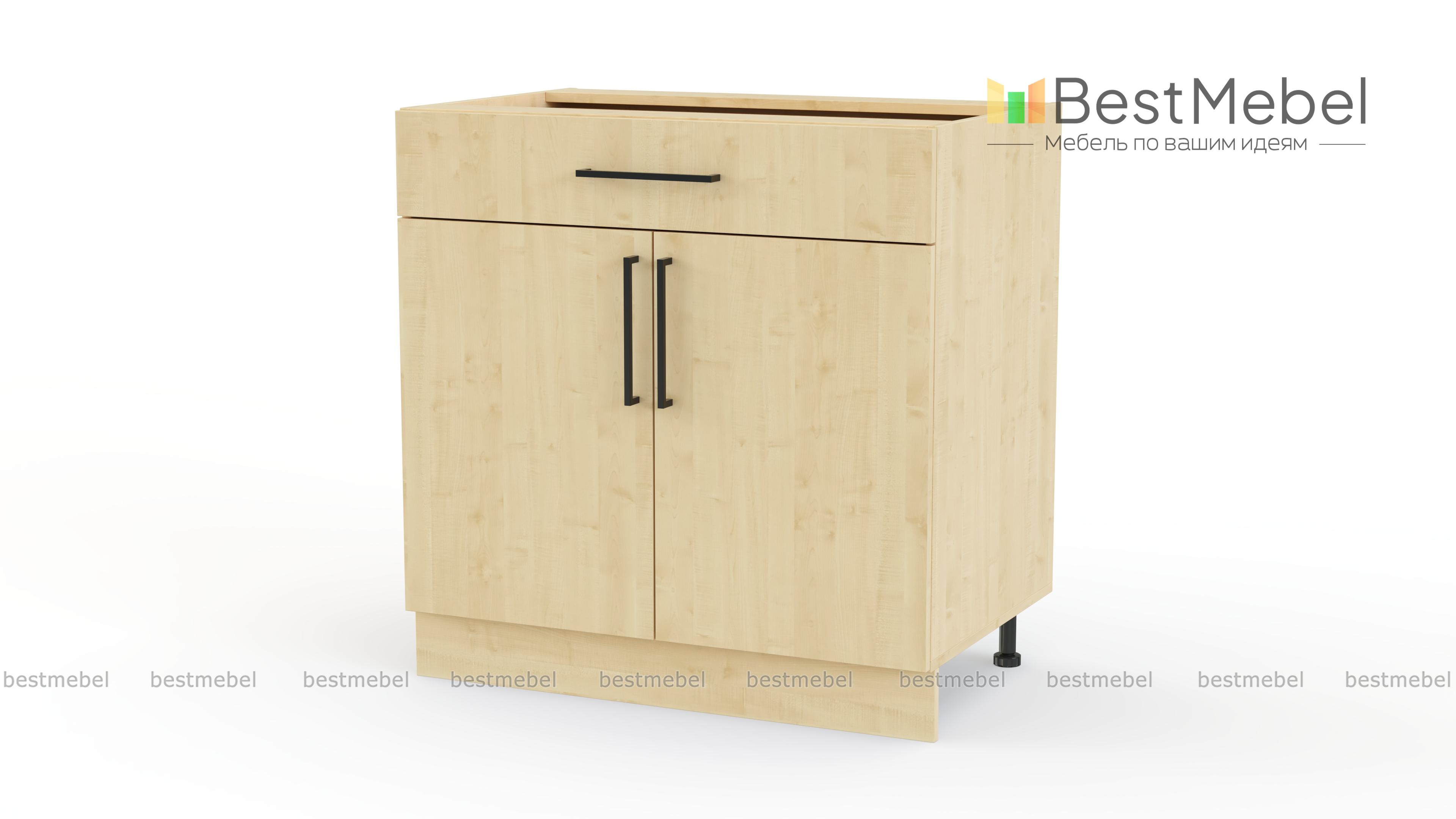 Шкаф нижний с ящиком Лайт BMS поможет разместить под рукой столовые приборы и кухонные мелочи, а для посуды и продуктов предусмотрено распашное отделение с полкой. Выполненный в нейтральном оттенке из прочной ламинированной плиты, шкаф надежен в эксплуатации и легко вписывается в современный интерьер. На фасады выдвижного ящика и двух дверей установлены стильные накладные скобы. Купить шкаф нижний с ящиком Лайт BMS вы сможете в нашем интернет-магазине с учетом необходимых размеров.