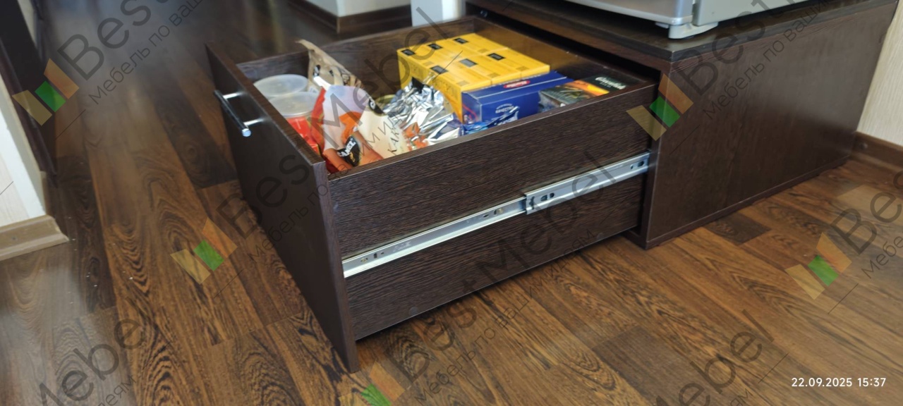 Только что собрала этот ШЕДЕВР, полный восторг, чисто рояль)))Заказала под высокий черный глянцевый холодильник, высоту пришлось уменьшить до минимума, так как основная задача была, чтобы холодильник был на колесах и легко передвигался. Сначала думала, что не сделают. Нет, сделали! Причем конструкторы сами доработали конструктив откидной двери с толкателем на магните, прислали эскиз на согласование и все выполнили. Покрытие глянцевая черная эмаль, ну так точно попали в цвет холодильника, у меня нет слов. Теперь есть место под сковороды и формы для выпечки, банки всякие, да что угодно можно туда поставить. Собирала сама, сборка на эксцентриках, все четко, как конструктор. Упаковка!!! - это отдельная тема, каждая деталь упакована в антивандальную пленку, и только потом в картон. Фурнитура - все точно до винтика. Отличная доставка, ребята-доставщики молодцы, подняли на этаж, помогли с оплатой по QR-коду. Тумба эта получилась даже красивее холодильника))), огромное Вам спасибо за заказ, Вы очень постарались. Я не в первый раз заказываю у Вас мебель, и всегда такое хорошее отношение к клиенту. Была небольшая задержка с эмалью,, наверное, в связи с глянцевой технологией - так каждый день операторы звонили и сообщали ход процесса выполнения. Я очень-очень довольна, все как я и хотела. Желаю Вам творческих успехов и процветания в бизнесе. Еще желаю, чтобы Ваш директор прочел мой отзыв и всем дал премию к Новому году))) На очереди теперь кухонный гарнитур и спальня. Только у Вас!
