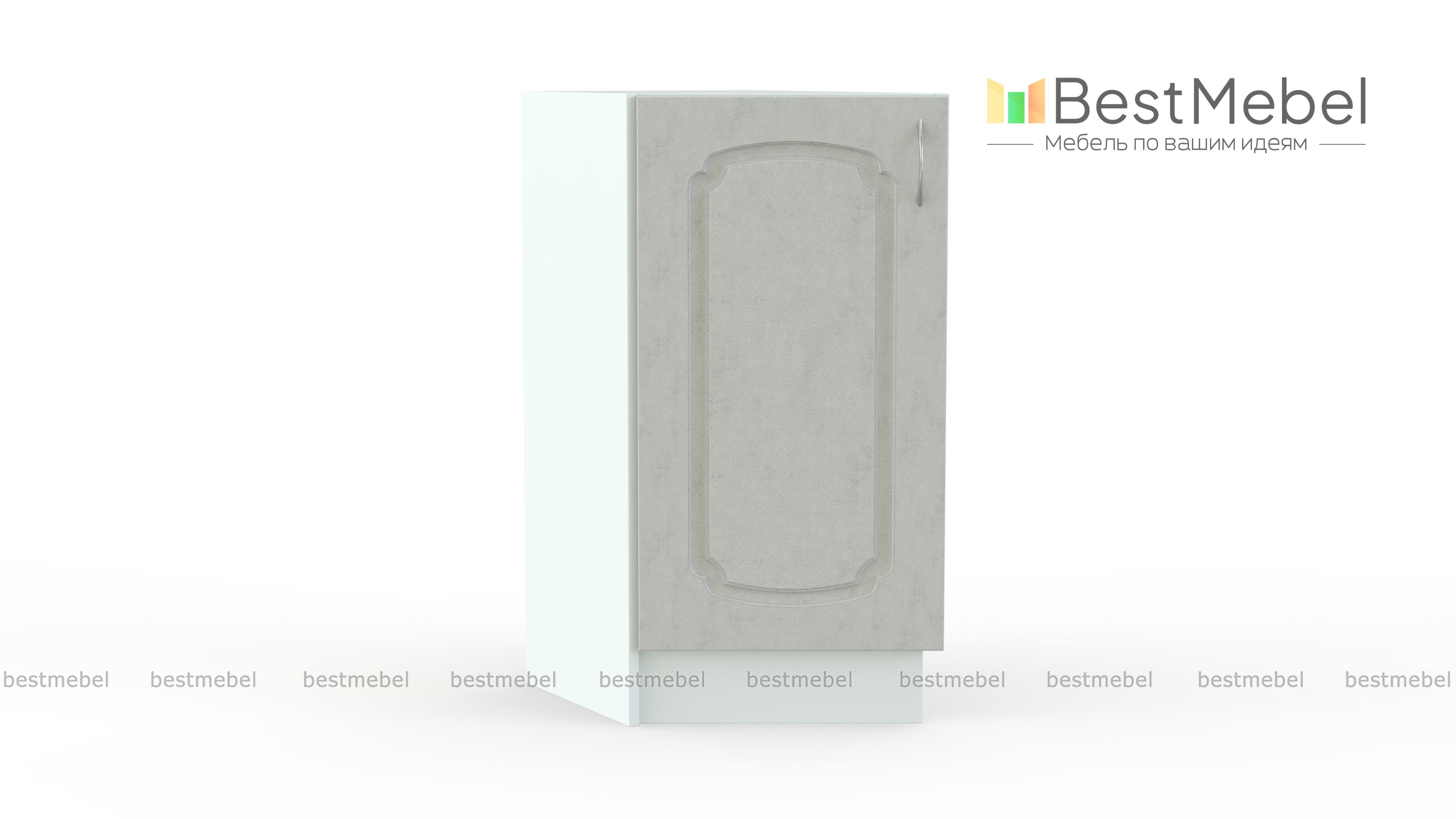 Тумба торцевая Эмилия BMS предназначена для оригинального завершения нижнего ряда модульной системы. Эффектная классическая модель оборудована распашным отделением для хранения небольших кухонных принадлежностей. Компактная и изящная, тумба придает всей конструкции визуальную легкость и сглаживает углы. Фасад декорирован фрезеровкой и тонкой ручкой под серебро, опоры – регулируемые. Купить тумбу торцевую Эмилия BMS для эстетичного кухонного интерьера вам поможет наш интернет-магазин.