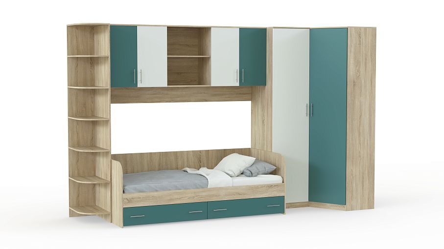 Детская комната Лучик 1 BMS – яркая и многофункциональная современная модель, объединившая комфортное спальное место с вместительной системой хранения. В комплект входит кровать с двумя выдвижными ящиками в основании, вместительный угловой шкаф, угловой модуль с открытыми полками и вместительная антресоль помогут разместить книги и необходимые мелочи. Цветные фасады добавят в детскую комнату красок и создадут позитивную атмосферу. Купить детскую комнату Лучик 1 BMS недорого приглашаем в наш интернет-магазин.