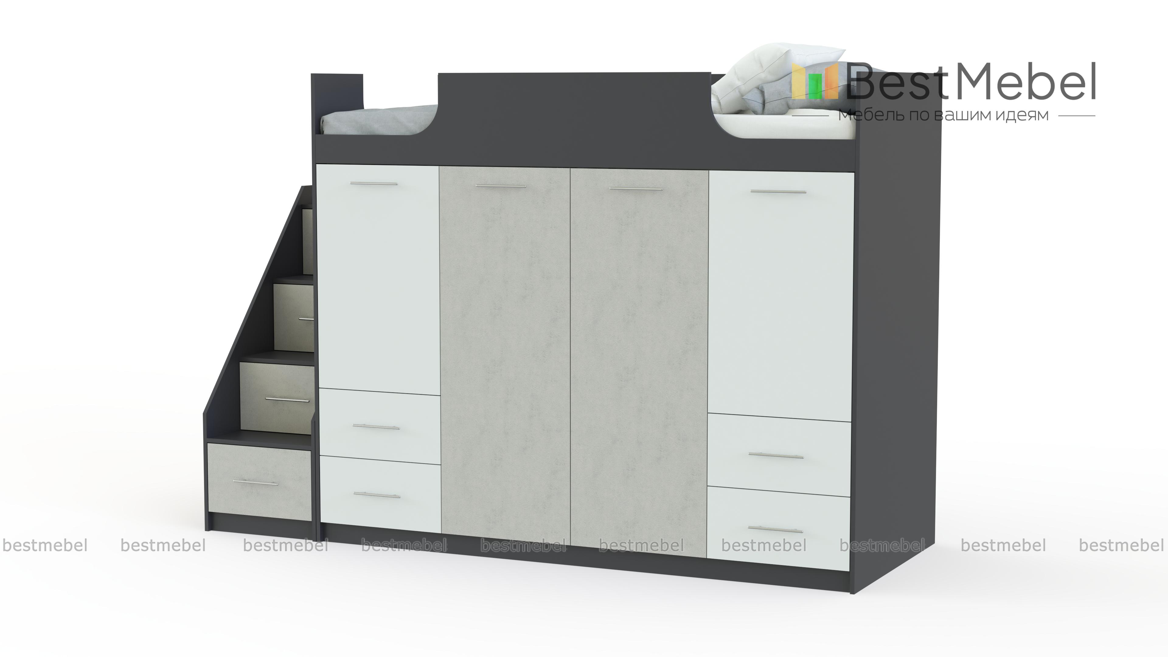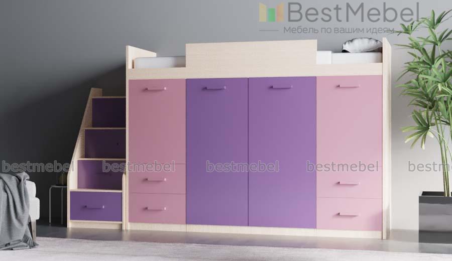 Кровать-чердак Симо 2 BMS – это не только комфортное спальное место, но и продуманная система хранения, которая поможет легко поддерживать в детской порядок. Расположенная на втором ярусе кровать оборудована защитным бортиком и дополнена лестницей-комодом с вместительными ящиками под ступеньками, а первый ярус занимают распашные отделения с полками и штангами и выдвижные ящики для игрушек или постельного белья. Купить кровать-чердак Симо 2 BMS приглашаем в наш интернет-магазин, подобрав цветовое решение.