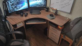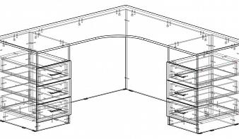 Угловой стол с тумбой и экраном BMS