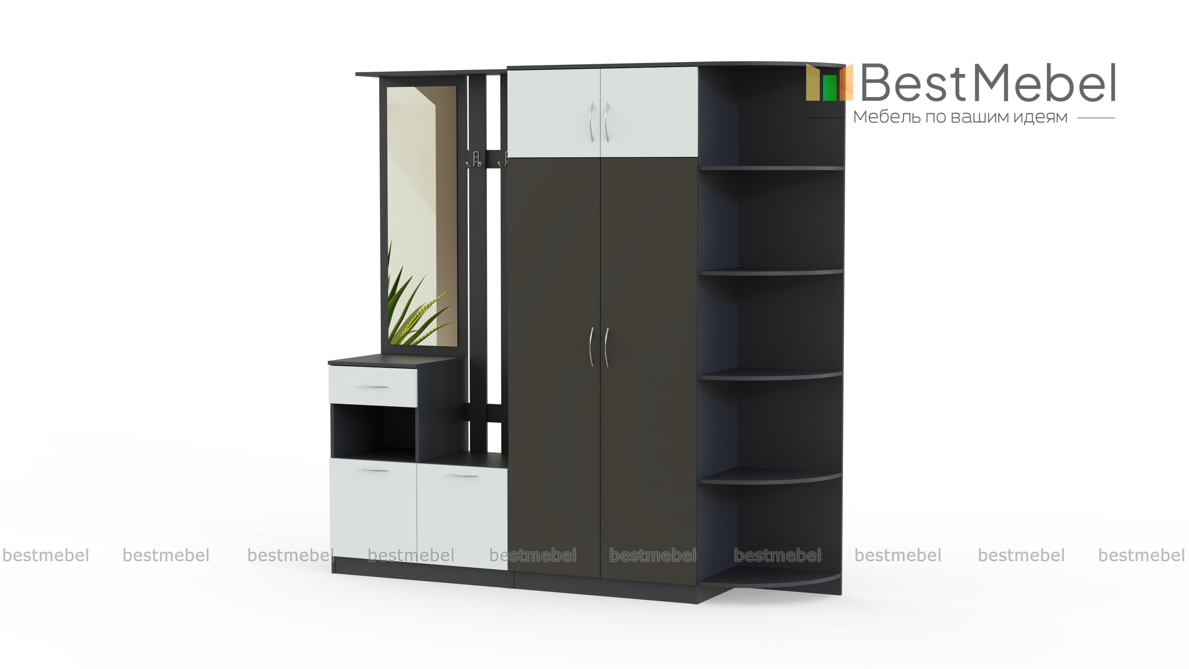 Стенка-прихожая «Идеал 18» BMS – вместительная стенка, которая смотрится легкой за счет гармоничных пропорций и светлых тонов фасадов и корпуса. Для наиболее удобного размещения предметов гардероба, аксессуаров и мелочей стенка оборудована платяным шкафом с антресолями, двумя тумбами, панелью с крючками и зеркалом и угловым элементом. Особенно изящный вид придают комплекту матовые фасады тумб и цветные дверцы шкафа. Купить стенку-прихожую «Идеал 18» BMS по лучшей цене вы сможете в нашем интернет-магазине.
