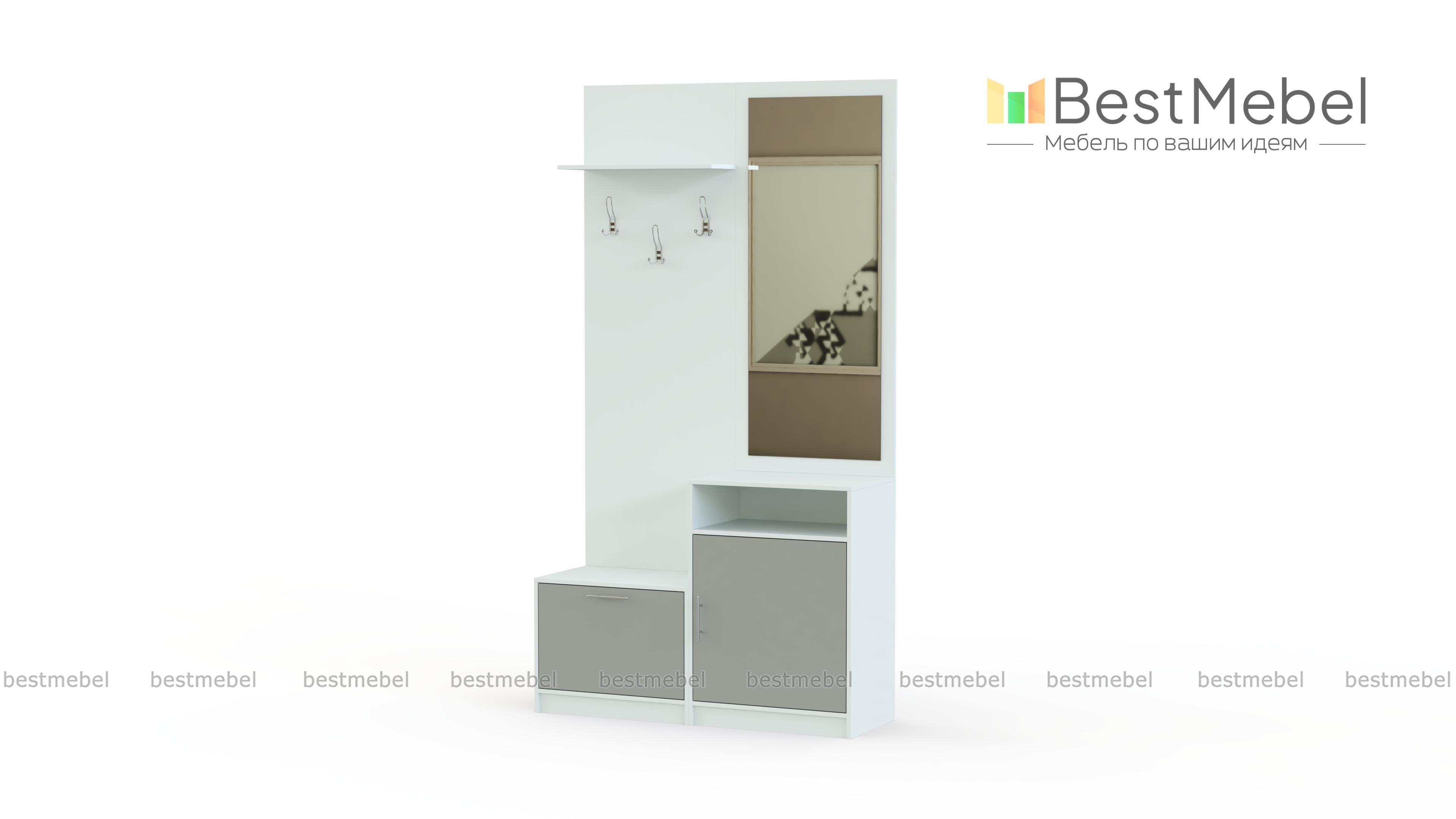 Прихожая Трис BMS – компактная и уютная модель, которая предназначена для правильного обустройства небольшого коридора. Для хранения обуви, комплект оборудован двумя тумбами. А одежду можно распределить на крючки. Миниатюрная полка пригодится для шляпок и шапок. Имеется удобное зеркало в составе этой модели. На сайте можно скорректировать оттенок и параметры изделия. Купить прихожую Трис BMS можете на сайте нашего фирменного магазина по низкой цене.