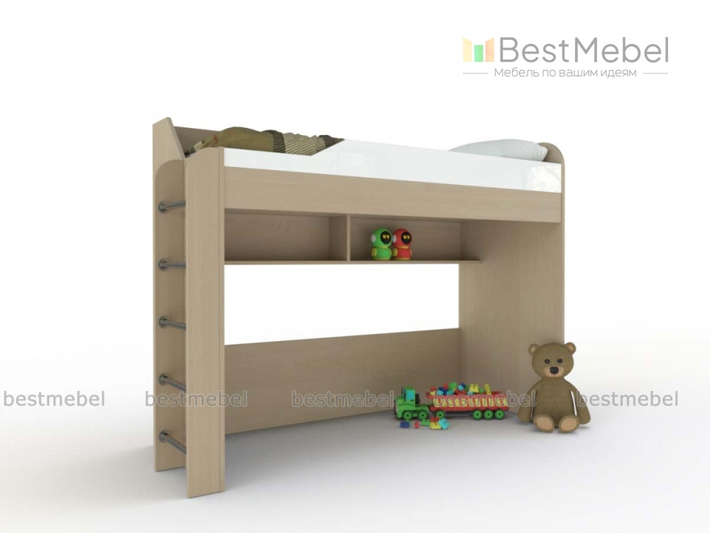 Кровать-чердак детская Ева КР-203 BMS поможет рационально организовать пространство современной детской комнаты. Полноценный сон ребенку подарит комфортное спальное место второго яруса со скругленными защитными бортиками. На первом же, оборудованном книжной полкой, вы сможете разместить письменный стол, дополнительную кровать или обустроить игровую зону. Купить кровать-чердак детскую Ева КР-203 BMS приглашаем в наш интернет-магазин с учетом необходимых параметров.