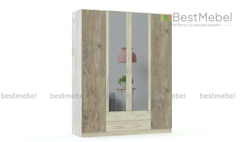 Распашной шкаф Ариэлла BMS выполнен в трендовых оттенках с имитацией фактуры дерева. Особенную вместительность четырехдверной модели обеспечивает комбинированная конструкция с распашными отделениями для белья и одежды и четырьмя выдвижными ящиками. Зеркальные центральные створки сделают удобной примерку и позволят сэкономить на отдельном аксессуаре. Купить распашной шкаф Ариэлла BMS для комфортного интерьера с элементами экостиля вы сможете в нашем интернет-магазине.