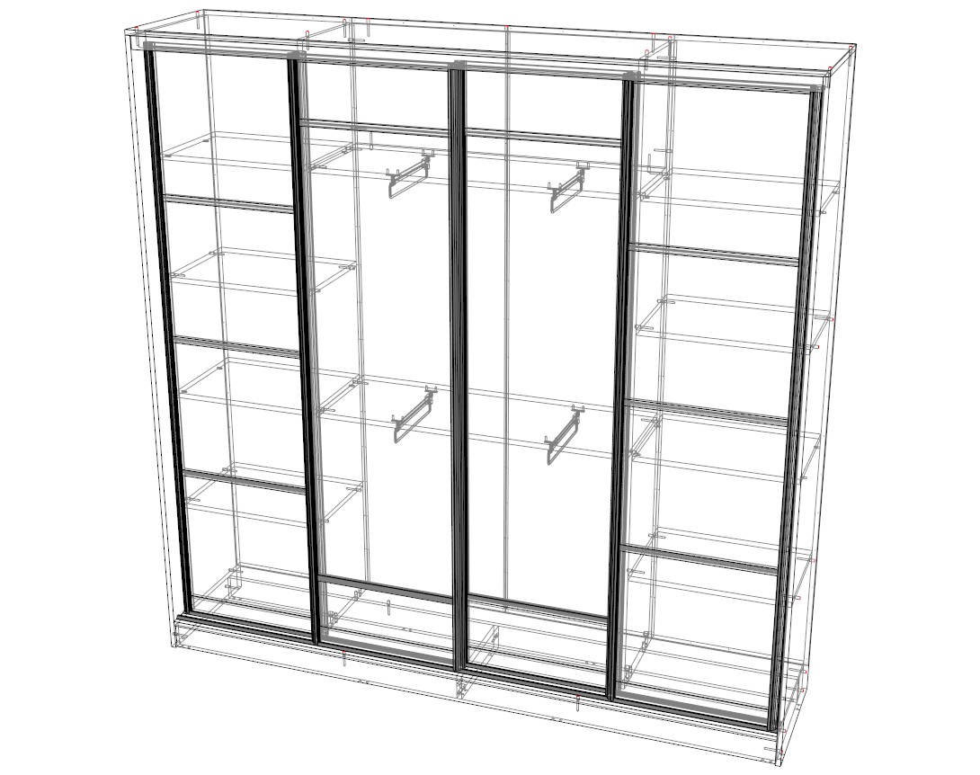 Шкаф-купе Композиция-14 BMS – корпусная мебель, сочетающая в себе привлекательный внешний вид и многофункциональность. Внутреннее наполнение модели состоит из большого количества вместительных полок для хранения одежды и отделения для размещения вешалок. Фасады, разделенные на небольшие квадраты, в сочетании с большими зеркалами удачно впишутся в любой современный интерьер.