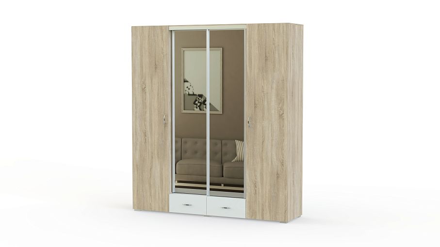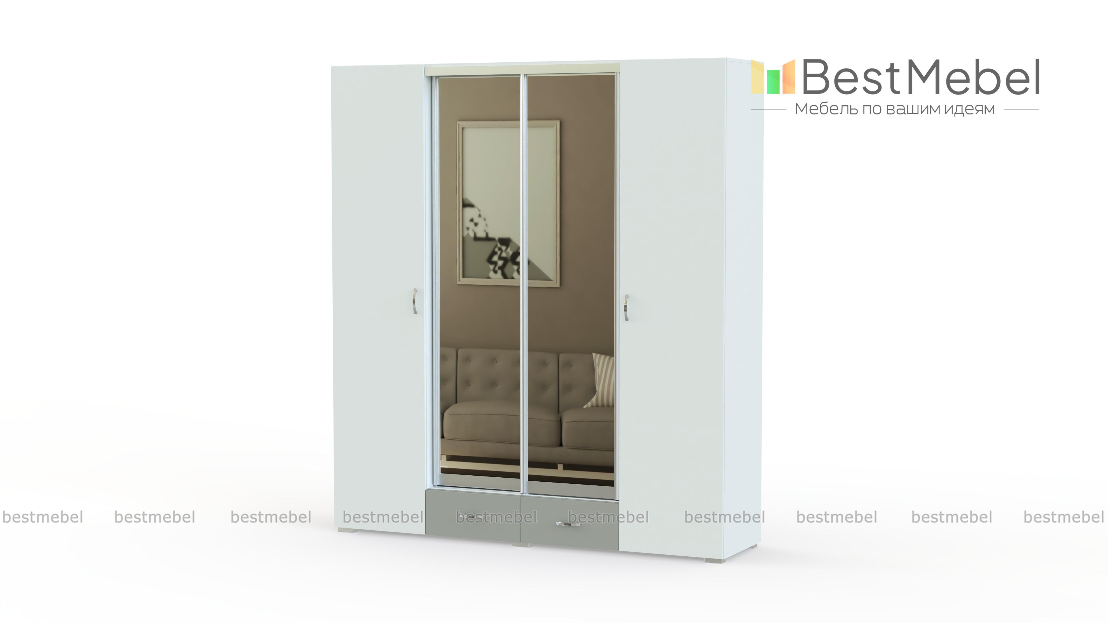 Распашной шкаф Линда-4 BMS привлекает внимание редкой вместительностью и практичной конструкцией. Модель в гармоничном сочетании белого, светлых древесных тонов и зеркал оборудована разными типами отделений – распашными, купе и выдвижными ящиками, что позволит сэкономить пространство и обеспечит комфортное пользование. Внутреннее наполнение – центральное отделение со штангой, полки и ящики в основании. Купить распашной шкаф Линда-4 BMS недорого приглашаем в наш интернет-магазин.