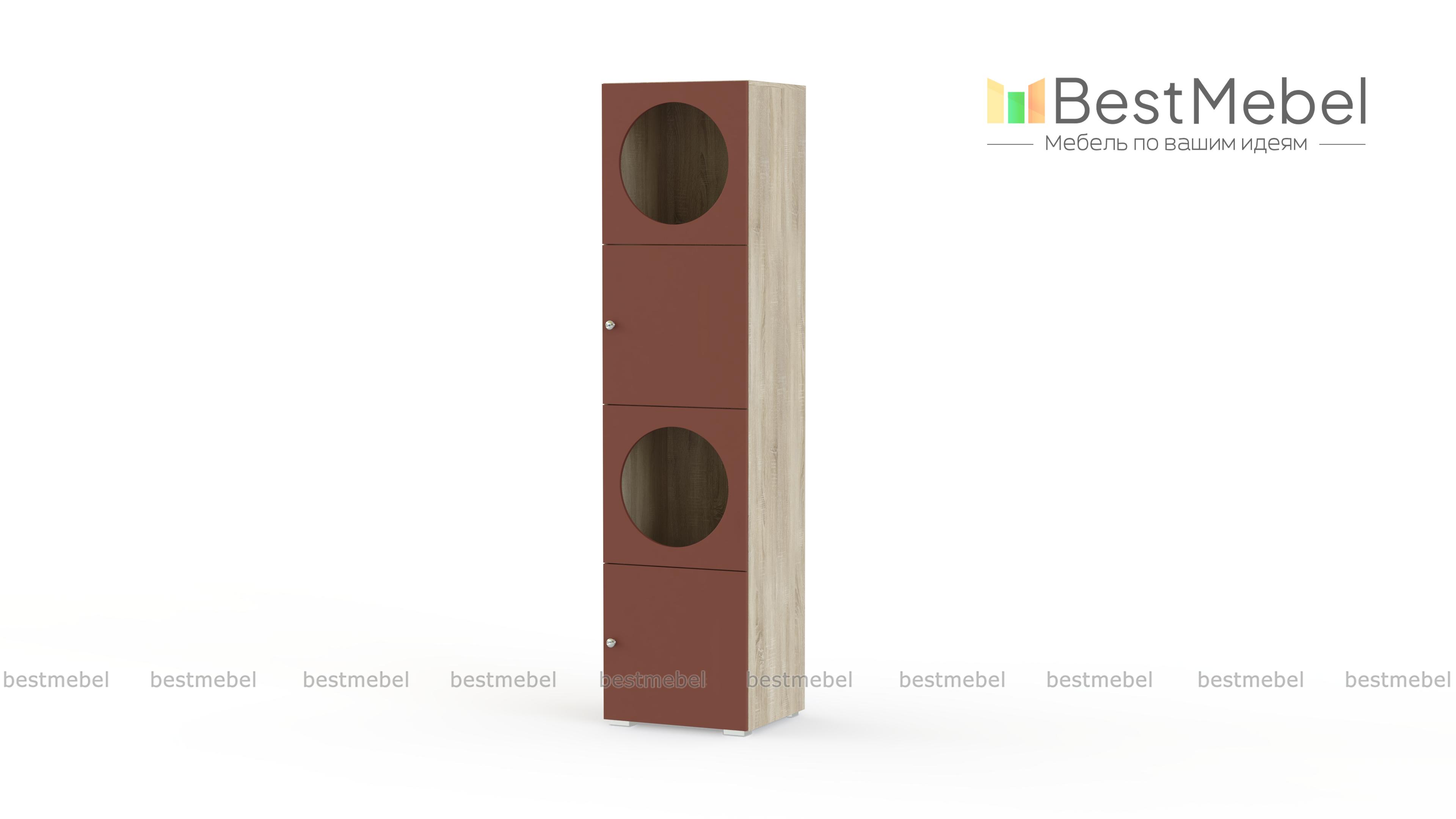 Шкаф-пенал Авелин 1 BMS с круглыми вырезами станет стильным дополнением современных гостиных и детских спален. Геометрический дизайн фасада делает интерьер выразительным, а компактные габариты и светлые оттенки прекрасно подходят для небольших помещений. Сочетая функции шкафа и витрины, модель позволяет разместить как вещи для хранения, так и книги, посуду, предметы декора. Купить шкаф-пенал Авелин 1 BMS с возможностью выбора цвета и размеров приглашаем в наш интернет-магазин.