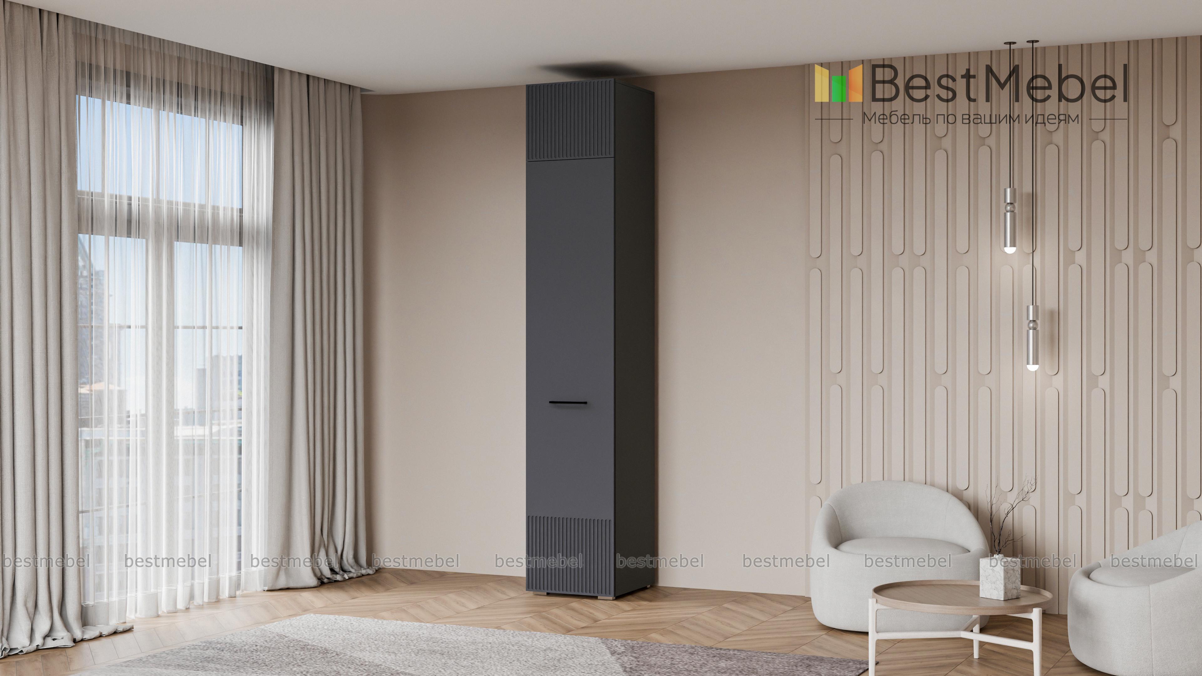 Шкаф распашной Декарт 7 BMS с одной дверцей и антресолью подходит для самых разных помещений. Высокий узкий шкаф с простым и выразительным благодаря фрезеровке дизайном оснащен необходимой для размещения вешалок с одеждой перекладиной и полочкой. Дополнительный отсек сверху значительно увеличивает пространство для хранения. Купить шкаф распашной Декарт 7 BMS вы сможете недорого в нашем интернет-магазине, подобрав подходящие именно вам цвета и размеры.