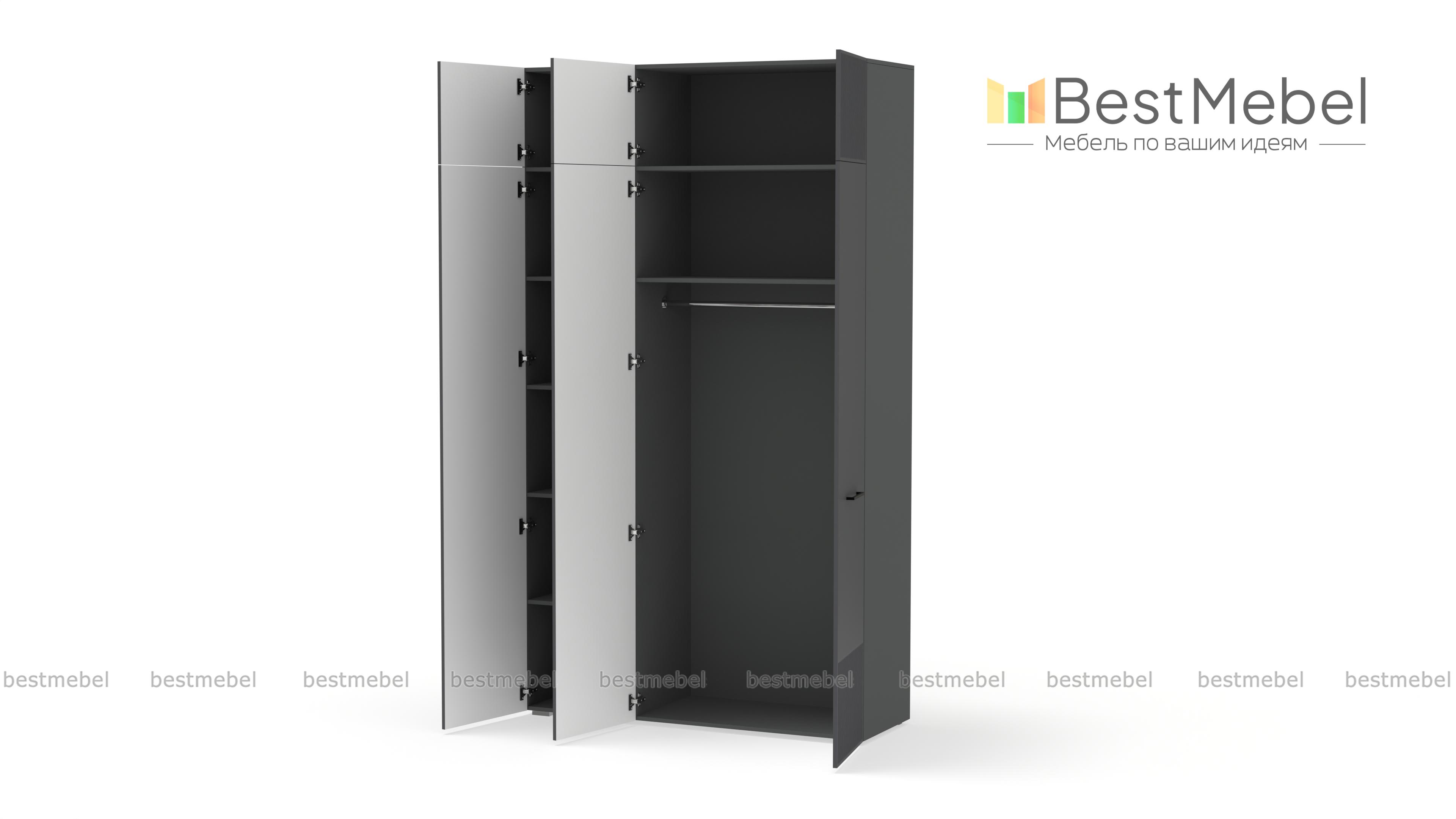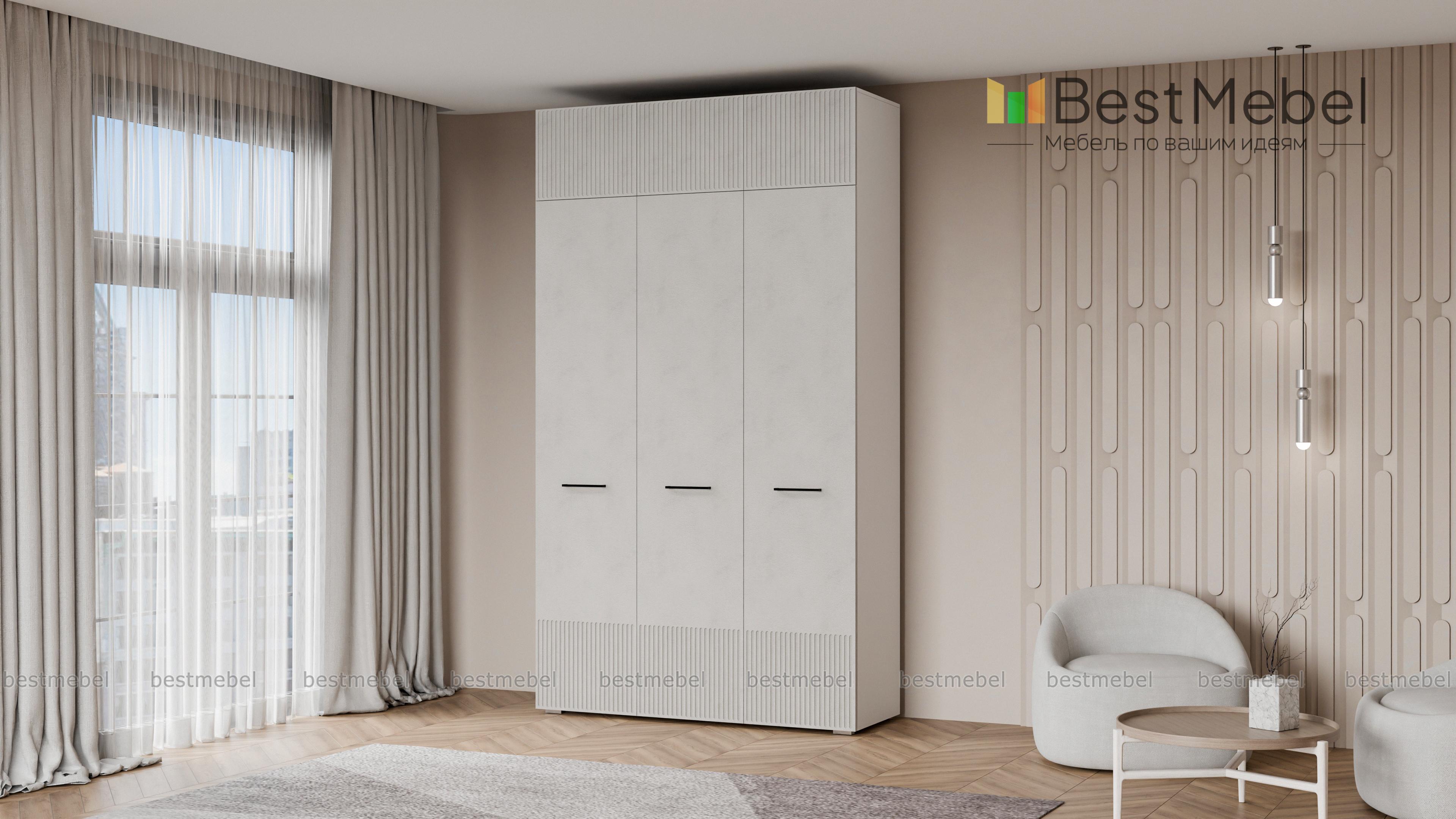 Шкаф распашной Декарт 9 BMS выполнен в современном классическом стиле. Нижняя часть фасада и дверцы антресоли украшены лаконичным стильным рельефом, в роли акцента выступают поперечные ручки-скобы. Платяное отделение справа и ряд бельевых полок слева — оптимально для хранения базового гардероба в спальне, детской комнате или прихожей. Купить шкаф распашной Декарт 9 BMS приглашаем в наш интернет-магазин с возможностью выбора габаритов, цвета и фурнитуры.