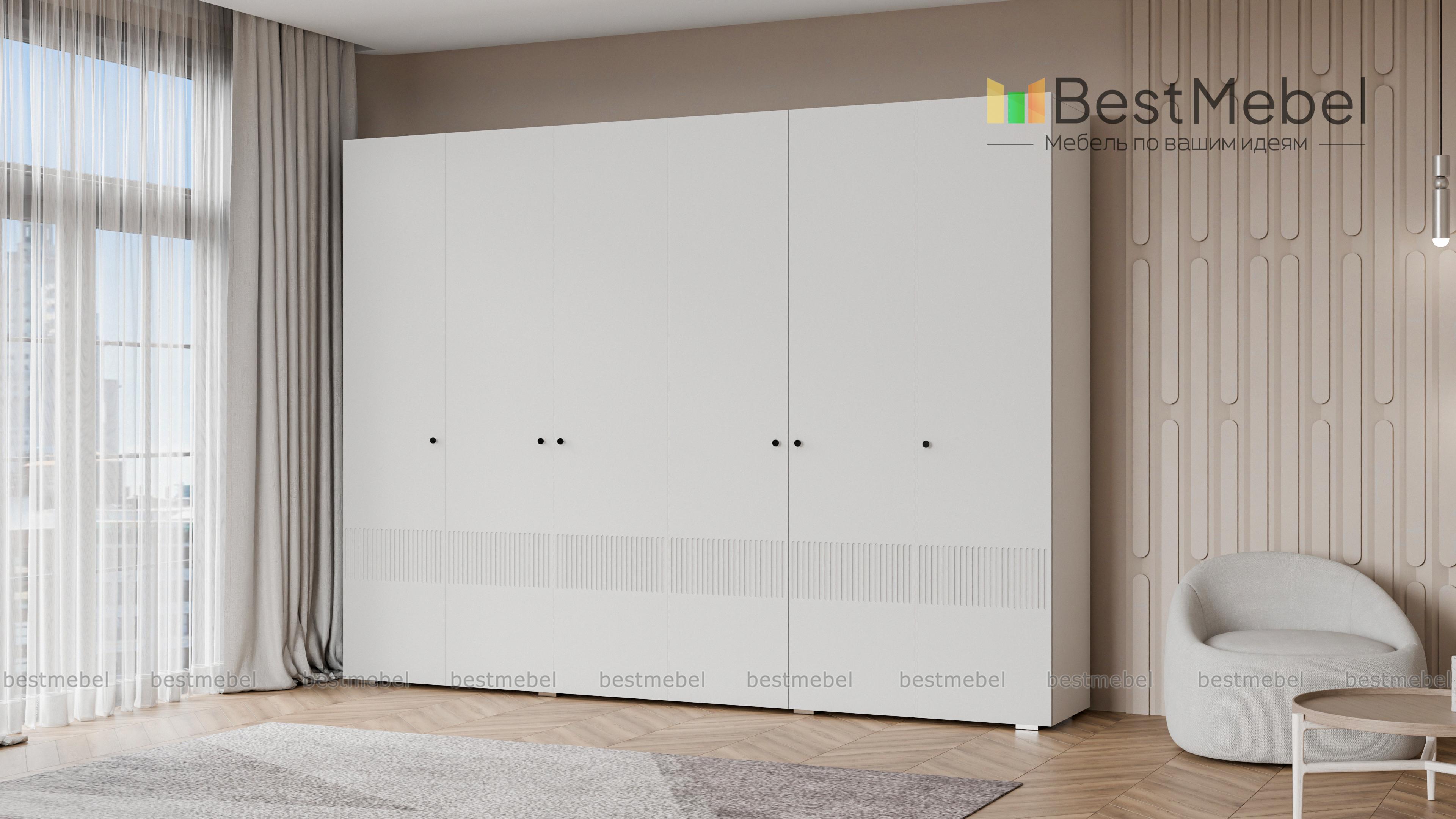 Шкаф распашной Джосс 6 BMS отличается простыми строгими линиями и актуальным декором. Шестидверный шкаф со сплошным цветным фасадом и фрезеровкой прекрасно подходит для спален, прихожих и детских. Два просторных отделения с платяными штангами и верхними полками дополнены однодверными секциями для хранения сложенной одежды и белья. Купить шкаф распашной Джосс 6 BMS вы сможете в нашем интернет-магазине, подобрав размеры, наполнение и подходящую цветовую гамму.