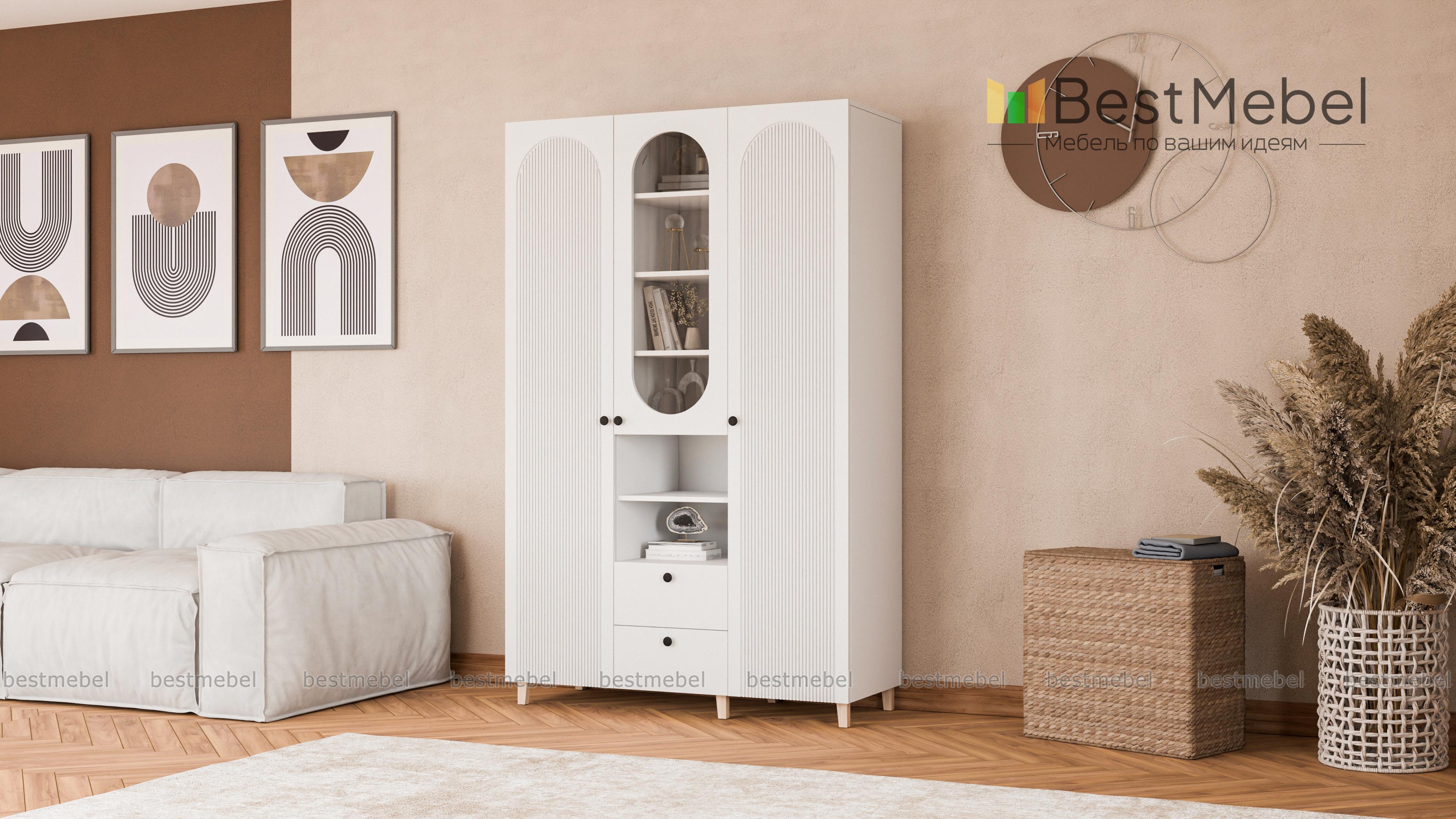 Шкаф распашной Рене 11 BMS с деревянными опорами поможет вам красиво и удобно оформить гостиную, детскую комнату или спальню. Декоративные овальные вырезы смягчают острые углы, а уюта добавит теплая цветовая гамма. Два закрытых распашных отделения разделены комбинированной секцией со стеклянной дверцей, открытыми полками и двумя выдвижными ящиками. Купить шкаф распашной Рене 11 BMS можно на сайте нашего интернет-магазина, подобрав размеры и оттенки из каталога.