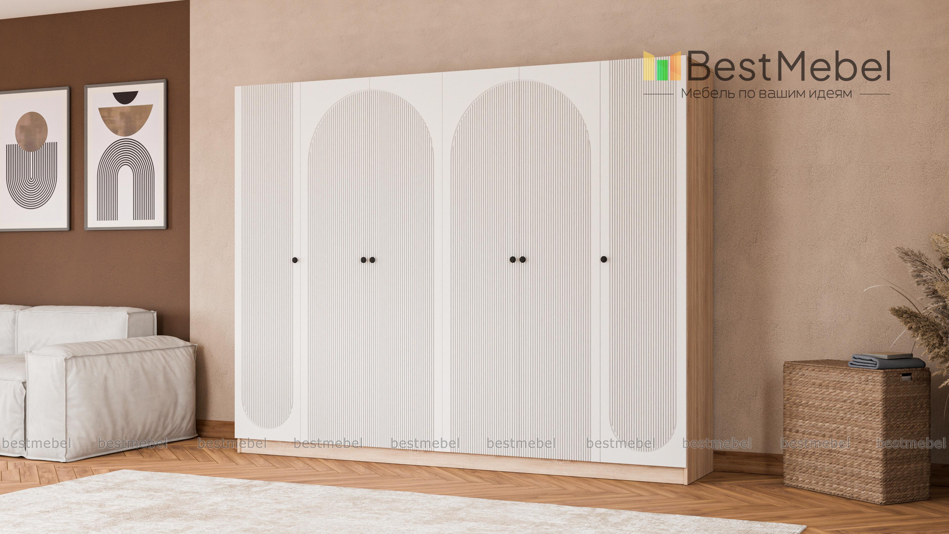 Шкаф распашной Вивьен 18 BMS станет эффектным дополнением просторной современной спальни или прихожей. Два двухдверных отделения в центре и две однодверные секции по бокам предоставляют много места для хранения гардероба и постельных принадлежностей. Светлое оформление придает габаритной конструкции легкость, а геометричный рельеф — выразительность. Купить шкаф распашной Вивьен 18 BMS с индивидуальным подбором размеров, цвета и наполнения приглашаем в наш интернет-магазин.