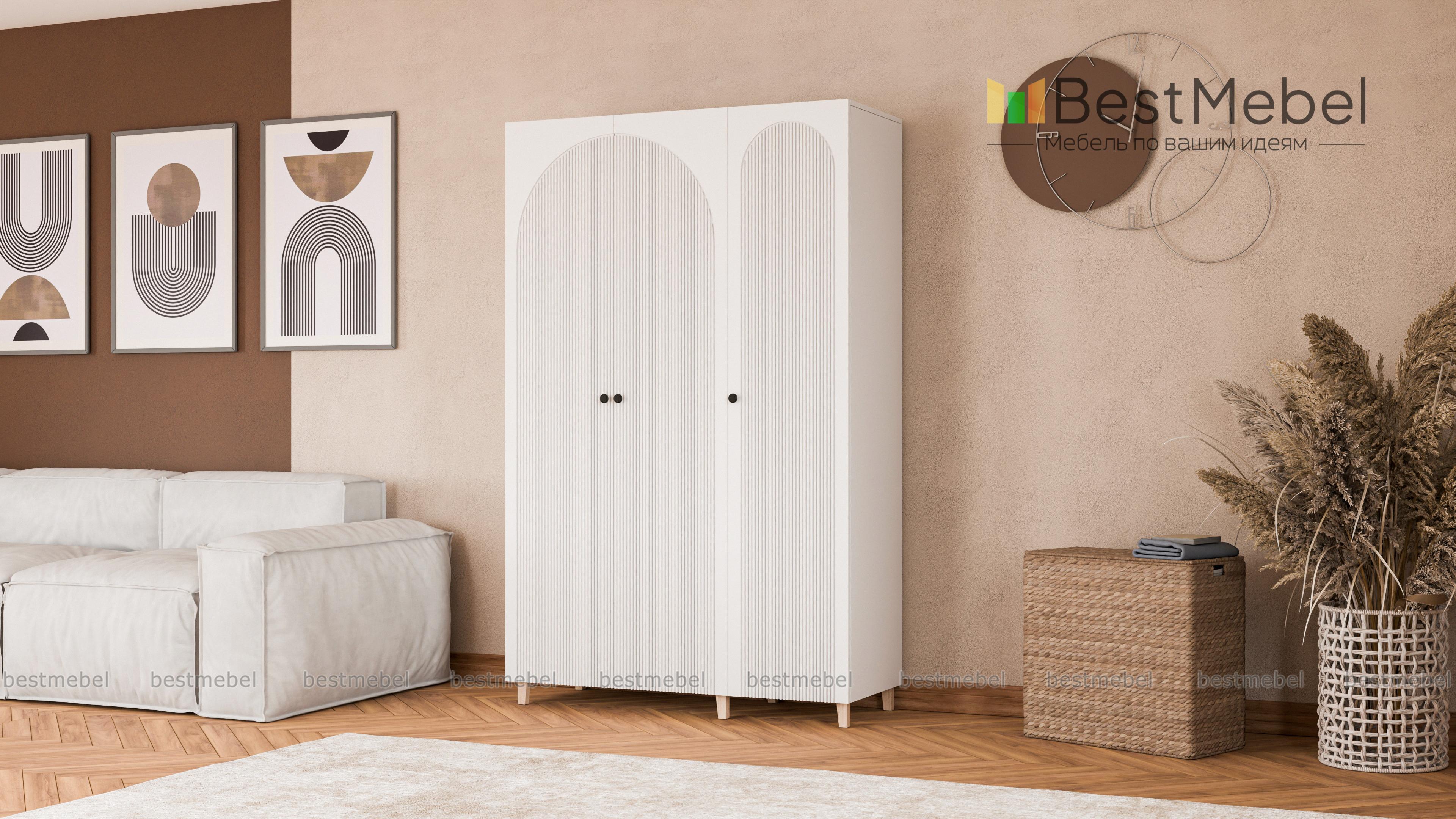 Шкаф распашной Вивьен 6 BMS с высокими ножками отличается легким силуэтом и стильным дизайном. Трехдверный гардероб с рифленым фасадом, выполненный в комфортной природной гамме, прекрасно вписывается в интерьеры детских, спален и прихожих. Продуманная организация внутреннего пространства шкафа позволяет разместить в порядке одежду и обувь. Купить шкаф распашной Вивьен 6 BMS с выбором размеров, цвета и наполнения можно на сайте нашего интернет-магазина.
