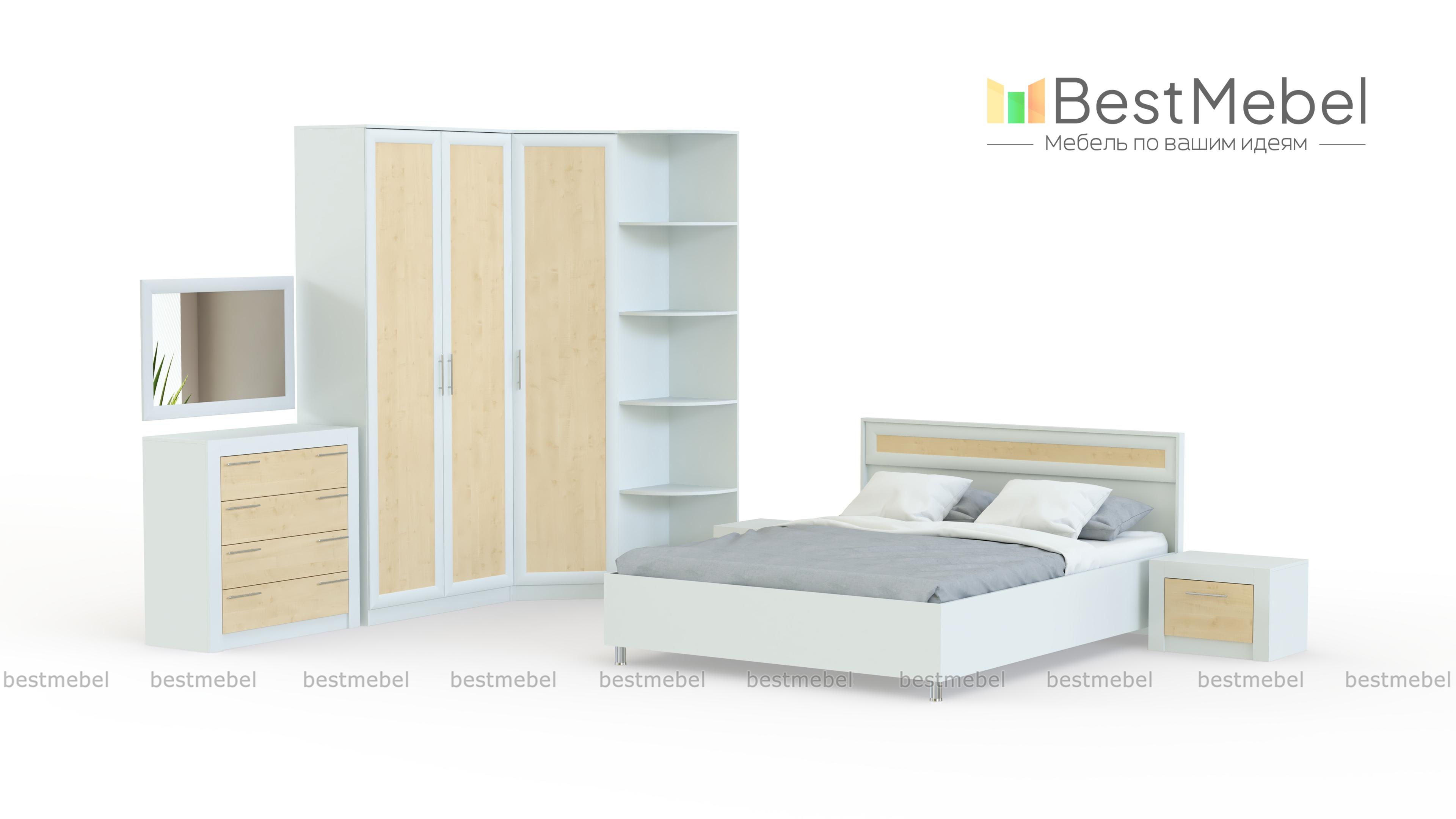 Спальня Токио 7 BMS по-восточному лаконична и выигрышно смотрится на контрасте древесных оттенков. В пространство у изголовья кровати гармонично вписываются две тумбы, для хранения постельного белья, одежды и всевозможных аксессуаров предусмотрены угловой шкаф с торцевым стеллажом и дополненный навесным зеркалом комод. Для отделки фасадов использованы широкие накладки и декоративная решетка. Купить спальню Токио 7 BMS с учетом необходимых размеров вы сможете в нашем интернет-магазине.