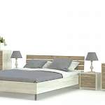 Спальня Валерия Арт BMS станет отличным решением для любителей экостиля благодаря имитирующим массив натурального дерева фасадам и лаконичности. В комплект входят просторная кровать с высокой, чуть скошенной спинкой из отдельных горизонтальных элементов, прикроватные тумбы, вместительный бельевой комод, навесное зеркало и практичная тумба-пенал с шестью выдвижными ящиками для мелочей. Высокие опоры придают всей конструкции визуальную легкость и облегчат уборку. Купить спальню Валерия Арт BMS вы сможете в нашем интернет-магазине.