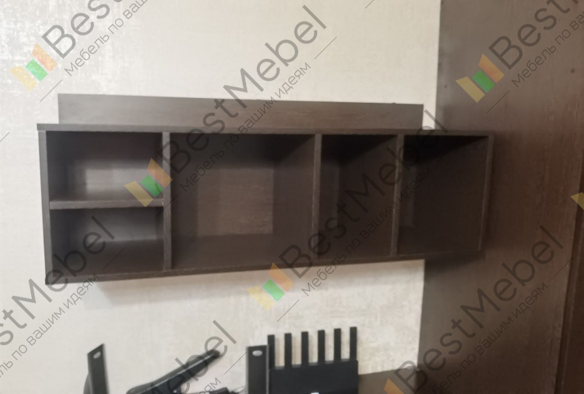 Полка замечательная. Сделали с несколькими изменениями по индивидуальному запросу на основе этой модели, цена выросла не сильно. Повесил, доволен просто до жути :) И вообще, BestMebel -- исключительные молодцы! Мебель качественная, точность изготовления выше всяких похвал, собирается, как конструктор Lego! Ну и вторая фотка -- немного мебели от Bestmebel, которую я приобрел за последние полтора месяца (стол, шкаф, полка).
