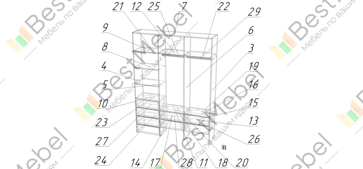 | Конструкция | С полками, С ящиками, Без задней стенки, Встраиваемая |