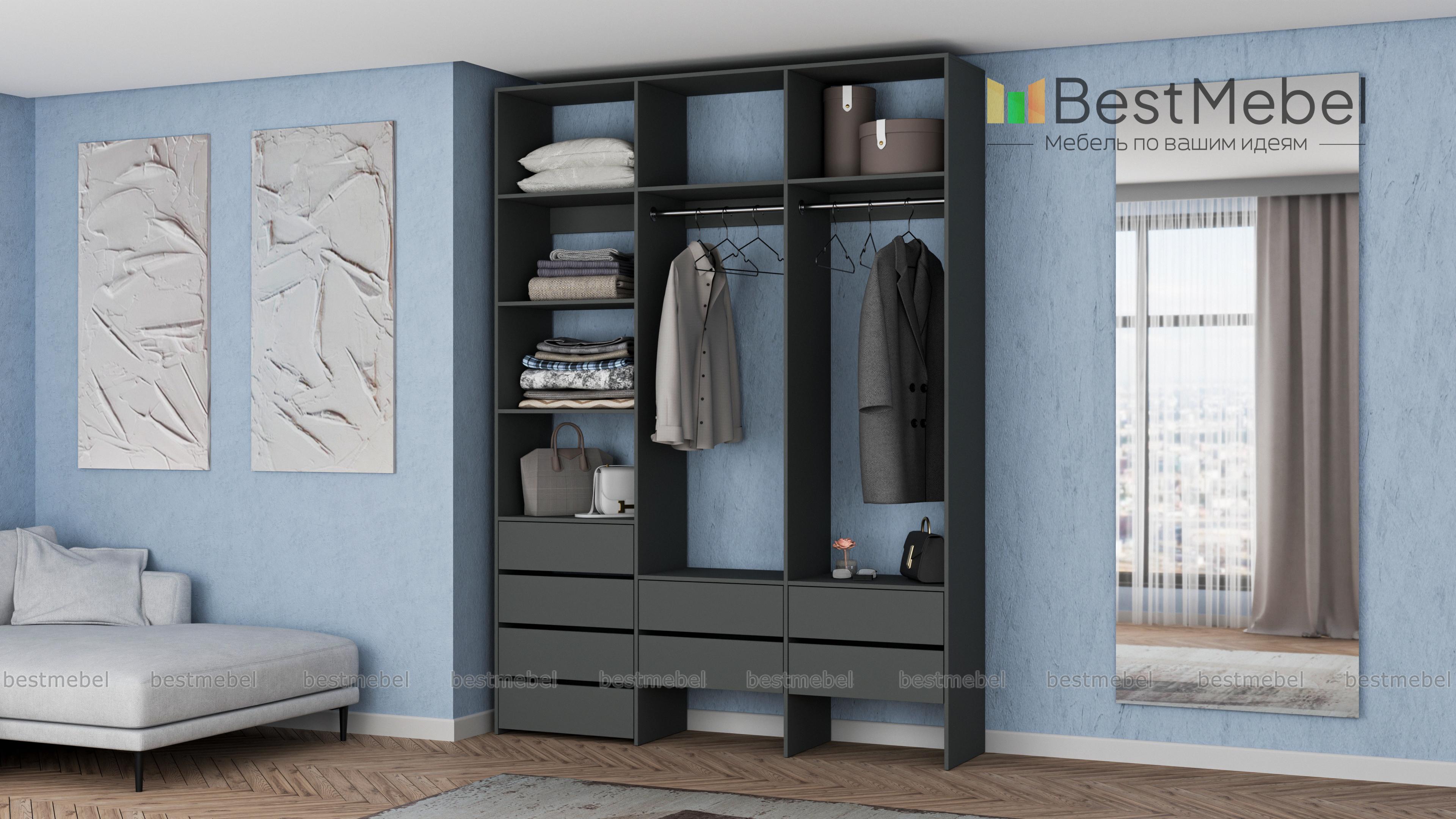 Стеллаж для одежды Мирта 54 BMS станет частью современной прихожей или гардеробной. Конструкция из ламинированной плиты имеет универсальный дизайн, надежна и функциональна. Система хранения трехсекционного стеллажа включает в себя две платяные штанги, ящики для белья и мелочей, ряд верхних и боковых полок, а пространство под ящиками можно использовать для размещения обуви. Купить стеллаж для одежды Мирта 54 BMS приглашаем в наш интернет-магазин, подобрав нужные размеры и цвет по каталогу.