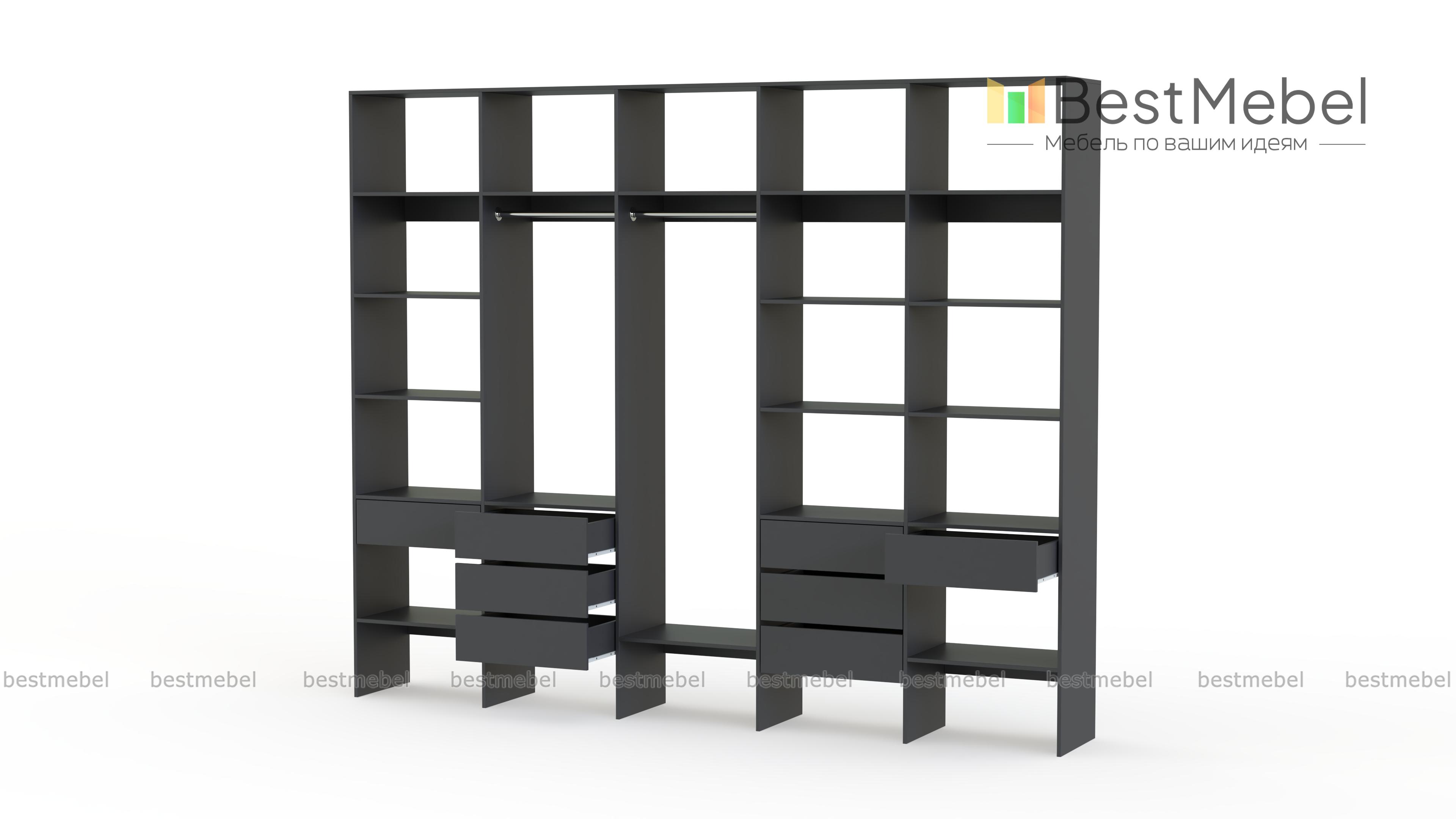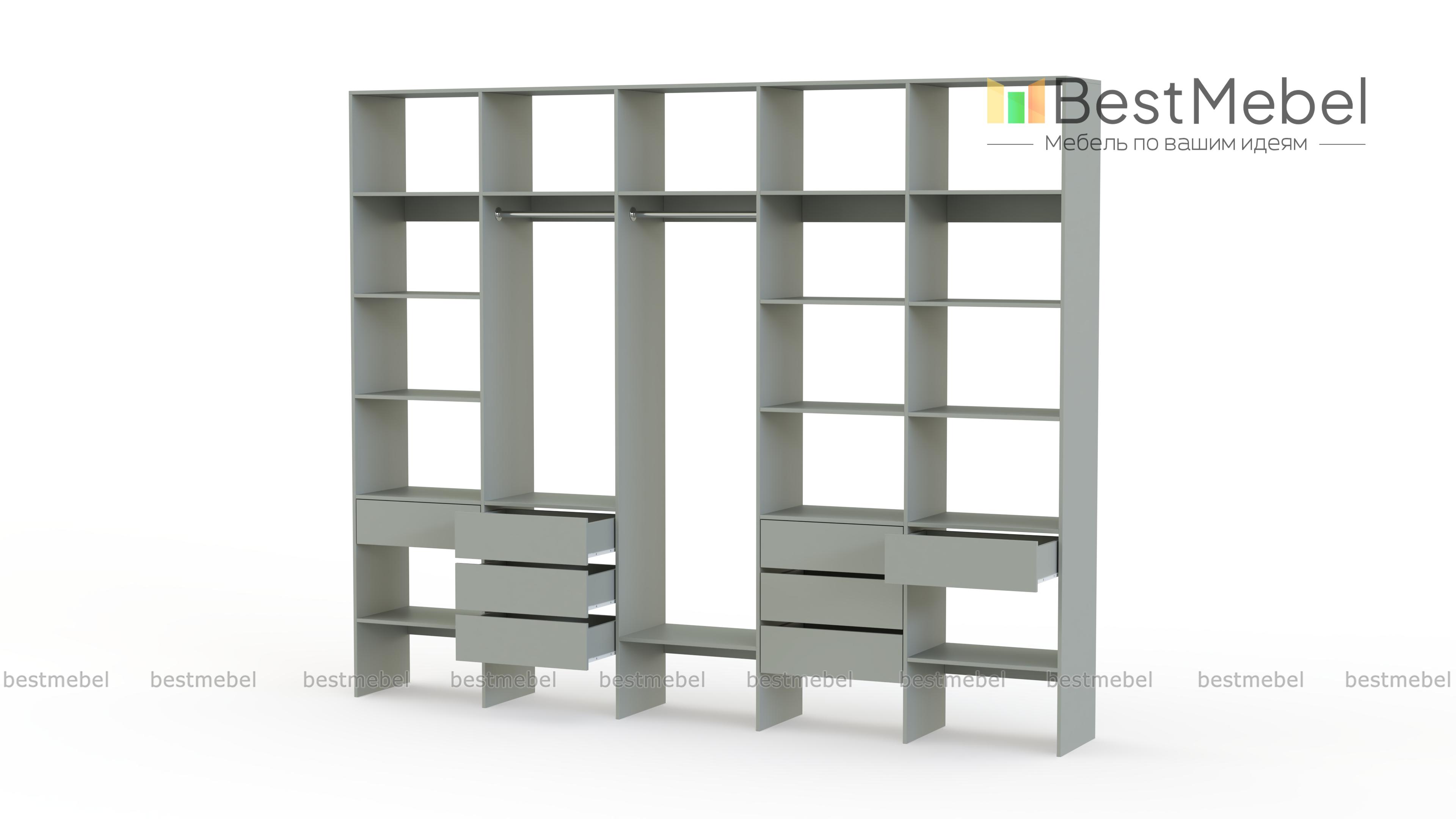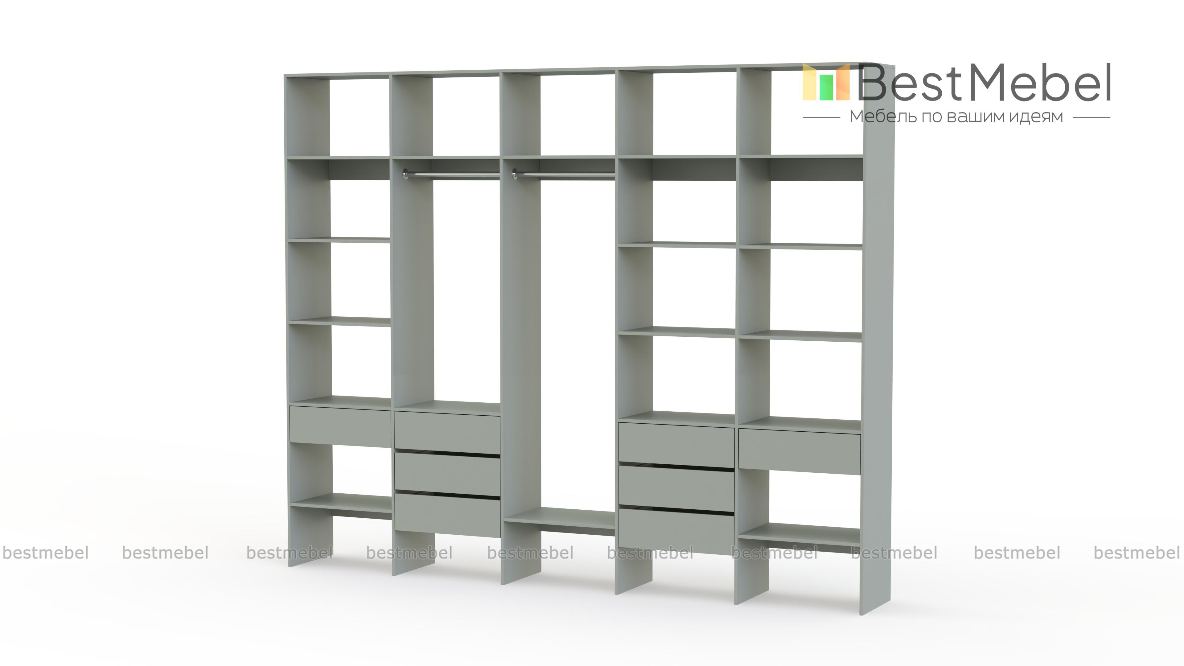 Стеллаж для одежды Мирта 72 BMS поможет вам обустроить зону для хранения вещей. Пять секций стеллажа оборудованы полками, двумя штангами и комбинацией из восьми выдвижных ящиков, позволяя выделить зоны для разных типов одежды, обуви и аксессуаров. Ламинированная ДСП в сочетании с качественной фурнитурой создает долговечную и эстетичную конструкцию. Купить стеллаж для одежды Мирта 72 BMS, подобрав оптимальные размеры и оттенок для вашего интерьера, приглашаем в наш интернет-магазин.