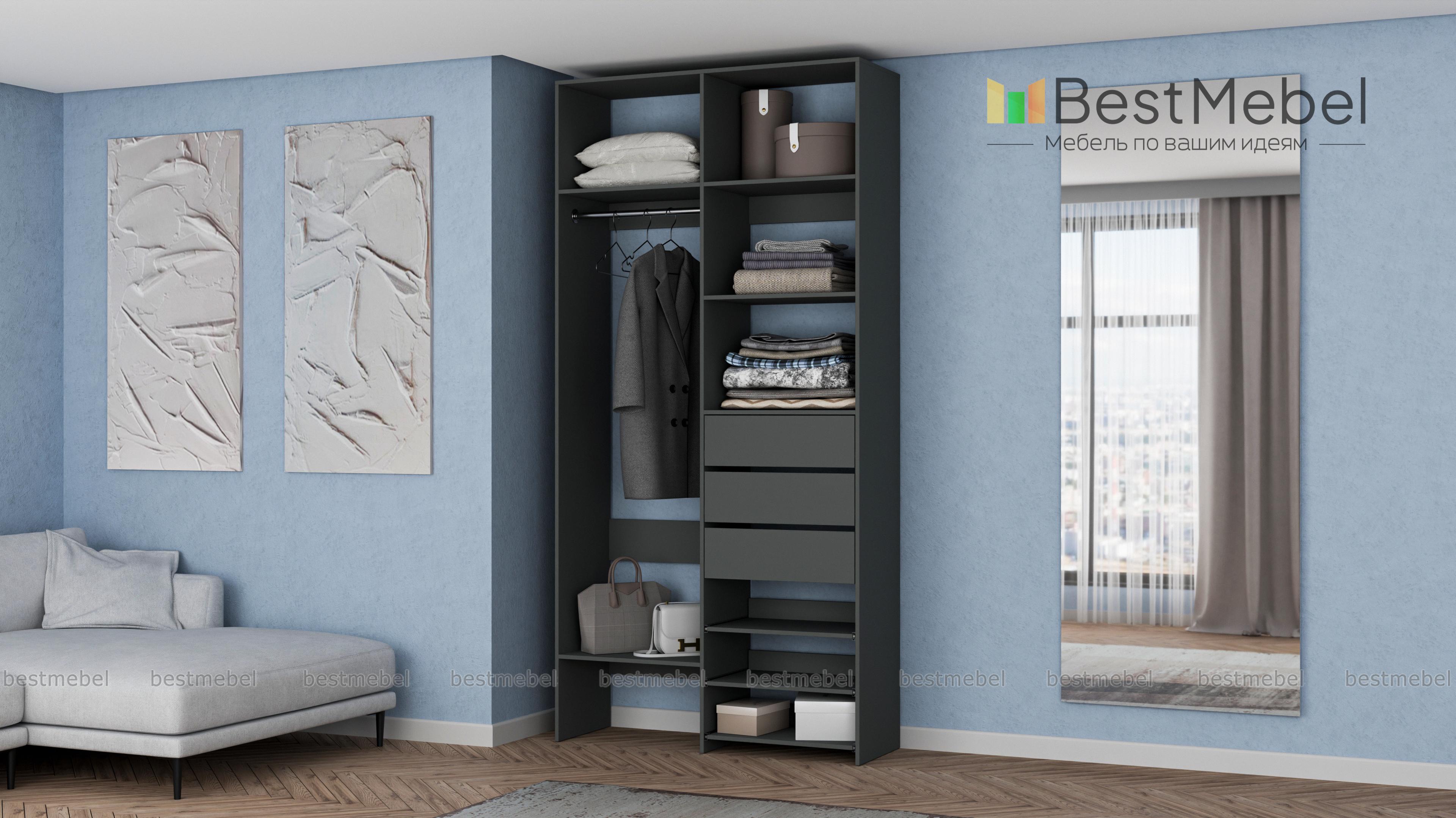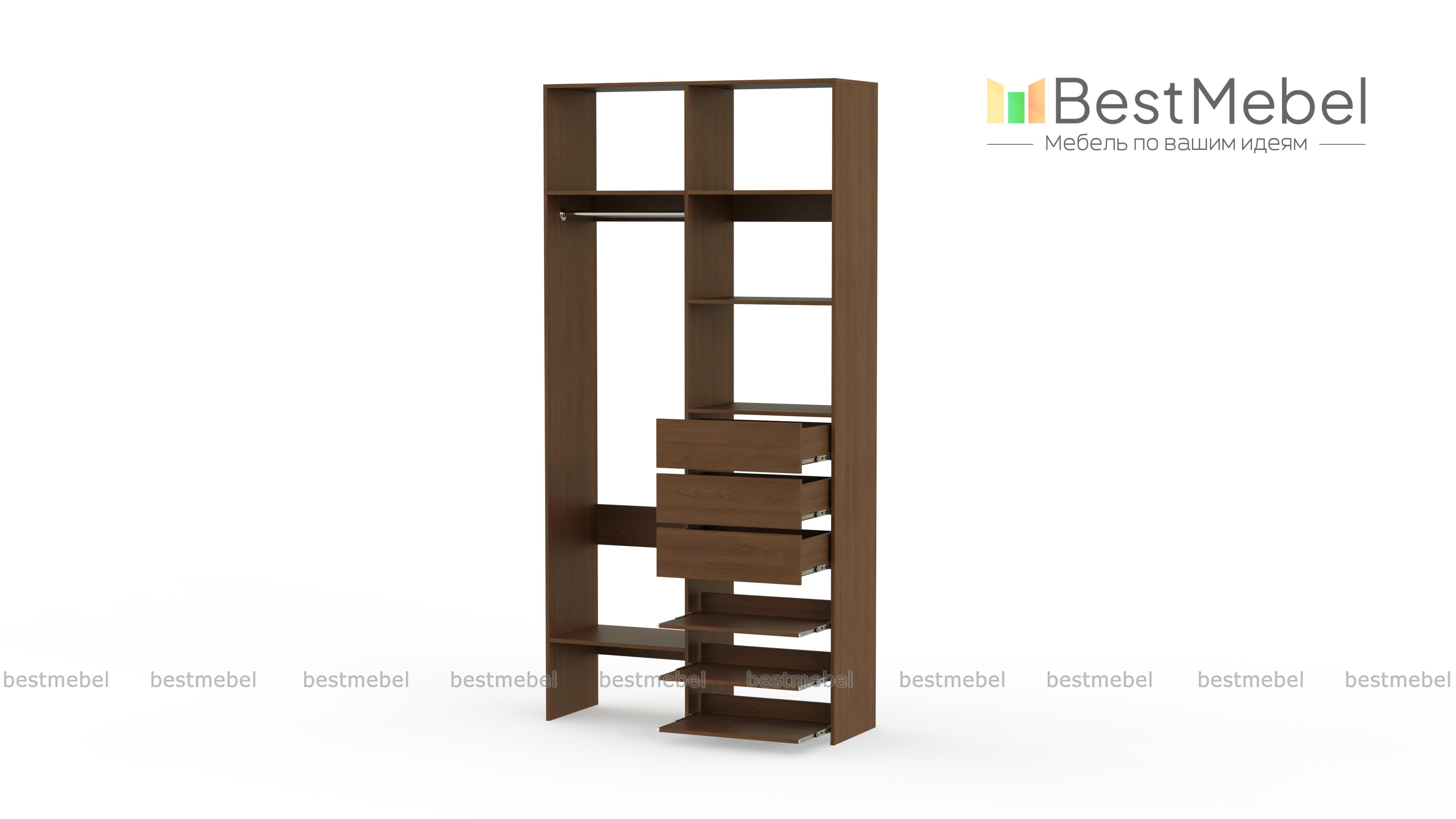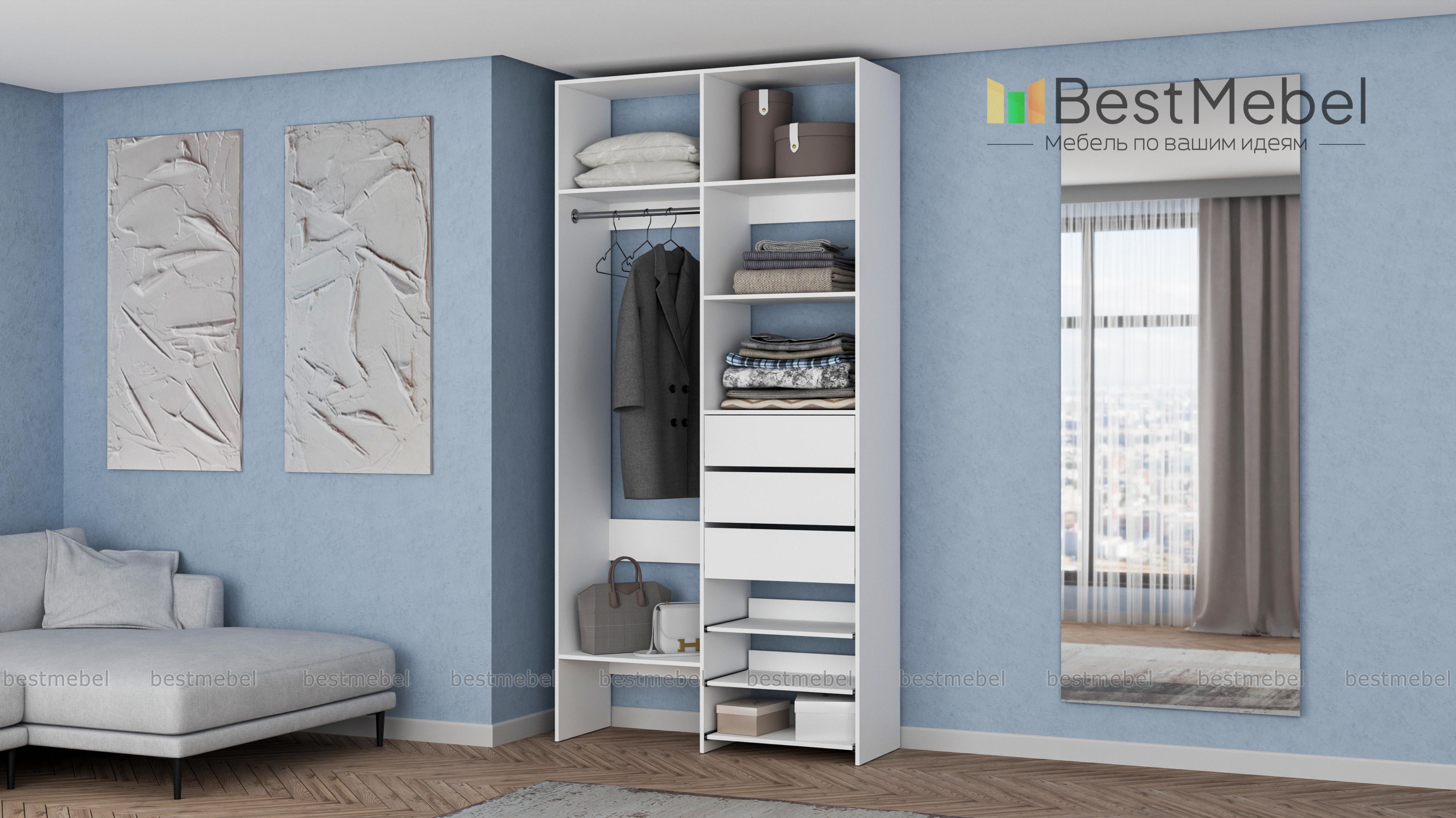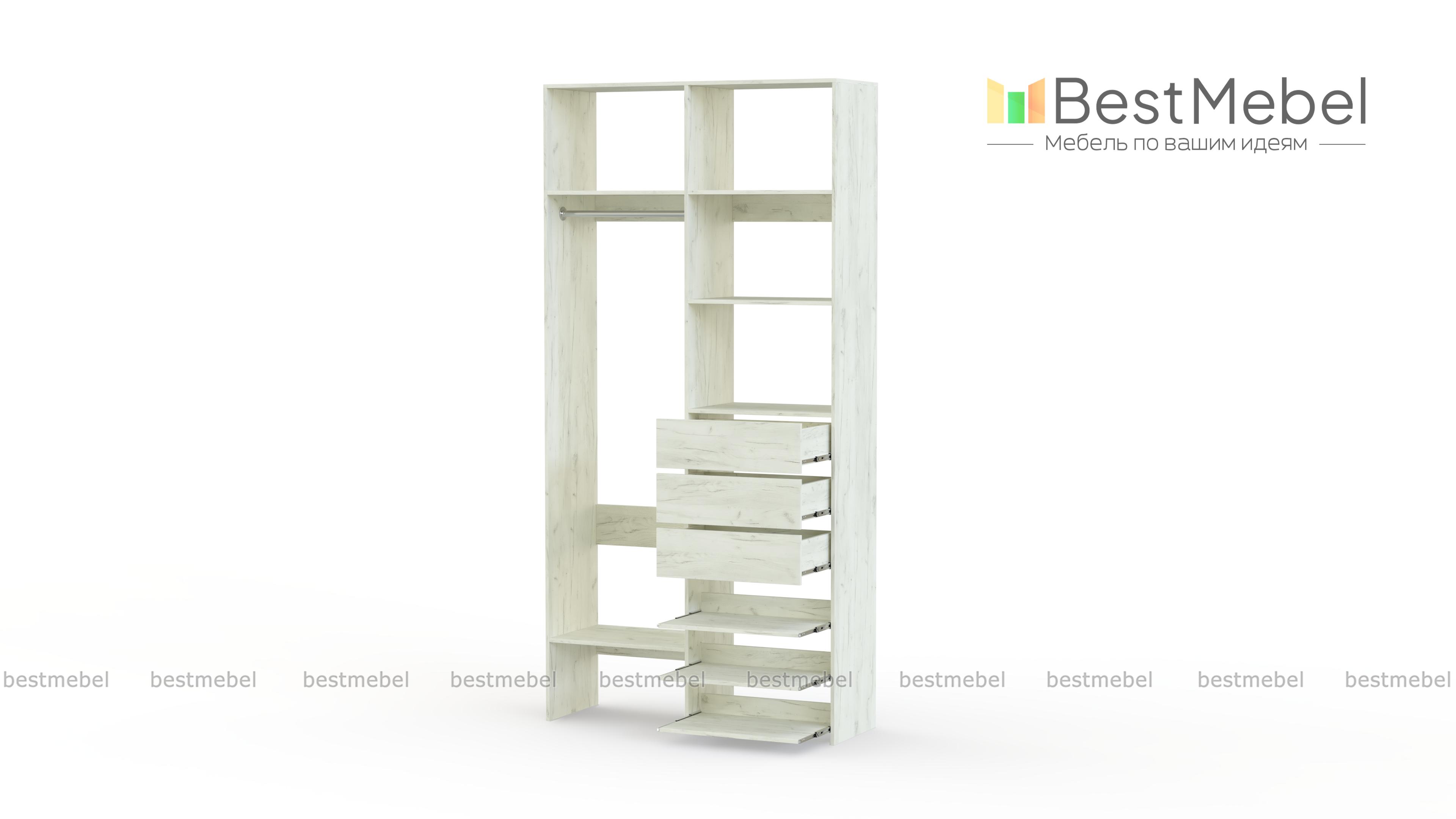 Стеллаж для одежды Мирта 84 BMS обеспечит базовому гардеробу компактное и бережное хранение. Платяная штанга, три ящика, полки стационарные и выдвижные располагаются на удобной для ежедневного пользования высоте. Благодаря небольшой ширине стеллаж легко впишется в ограниченное пространство гардеробной, маленькой спальни или прихожей. Купить стеллаж для одежды Мирта 84 BMS вы сможете недорого в нашем интернет-магазине, выбрав подходящий размер и цвет.