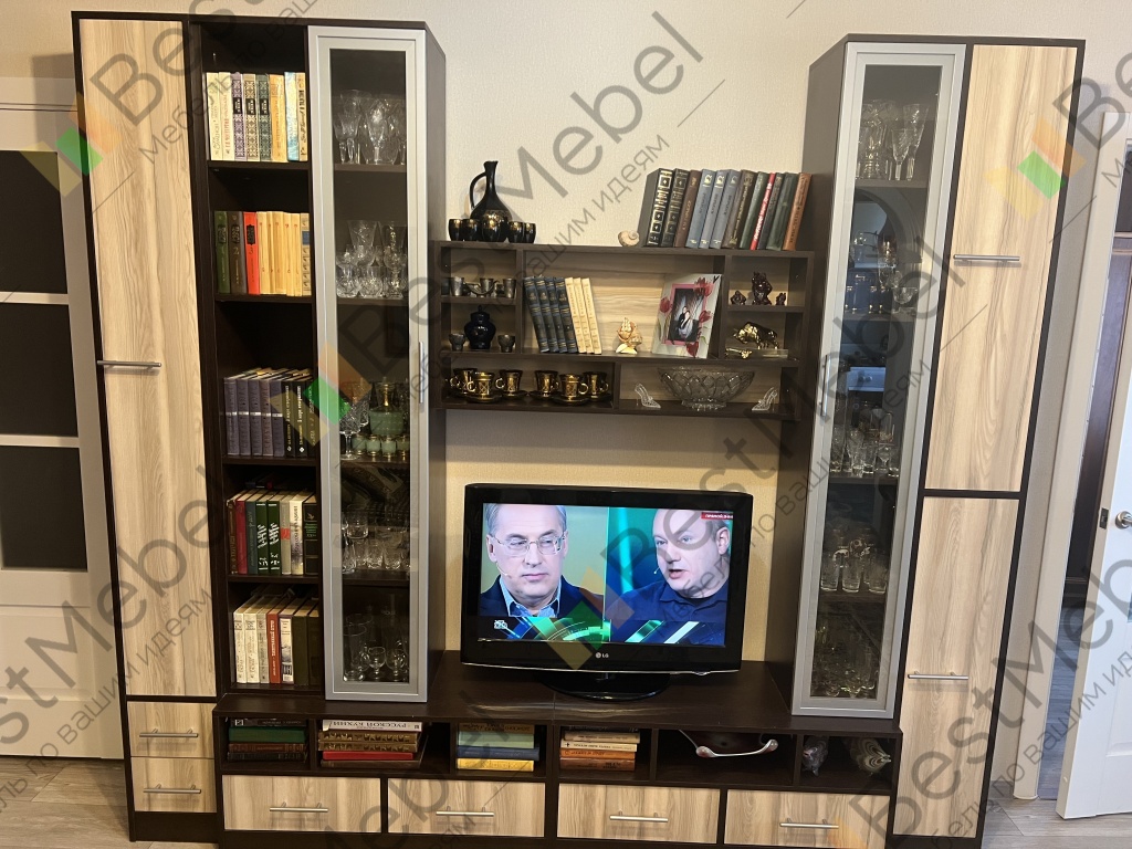 Приятно удивил дизиайн стенки. Чудесно вписался телевизор, гостиная стала богаче и шикарнее. Спасибо консультанту и достащикам. Доставили все вовремя. Все комплектующие на месте. Теперь буду покупать все что необходимо для квартиры только в этом магазине и знакомым порекомендую.
