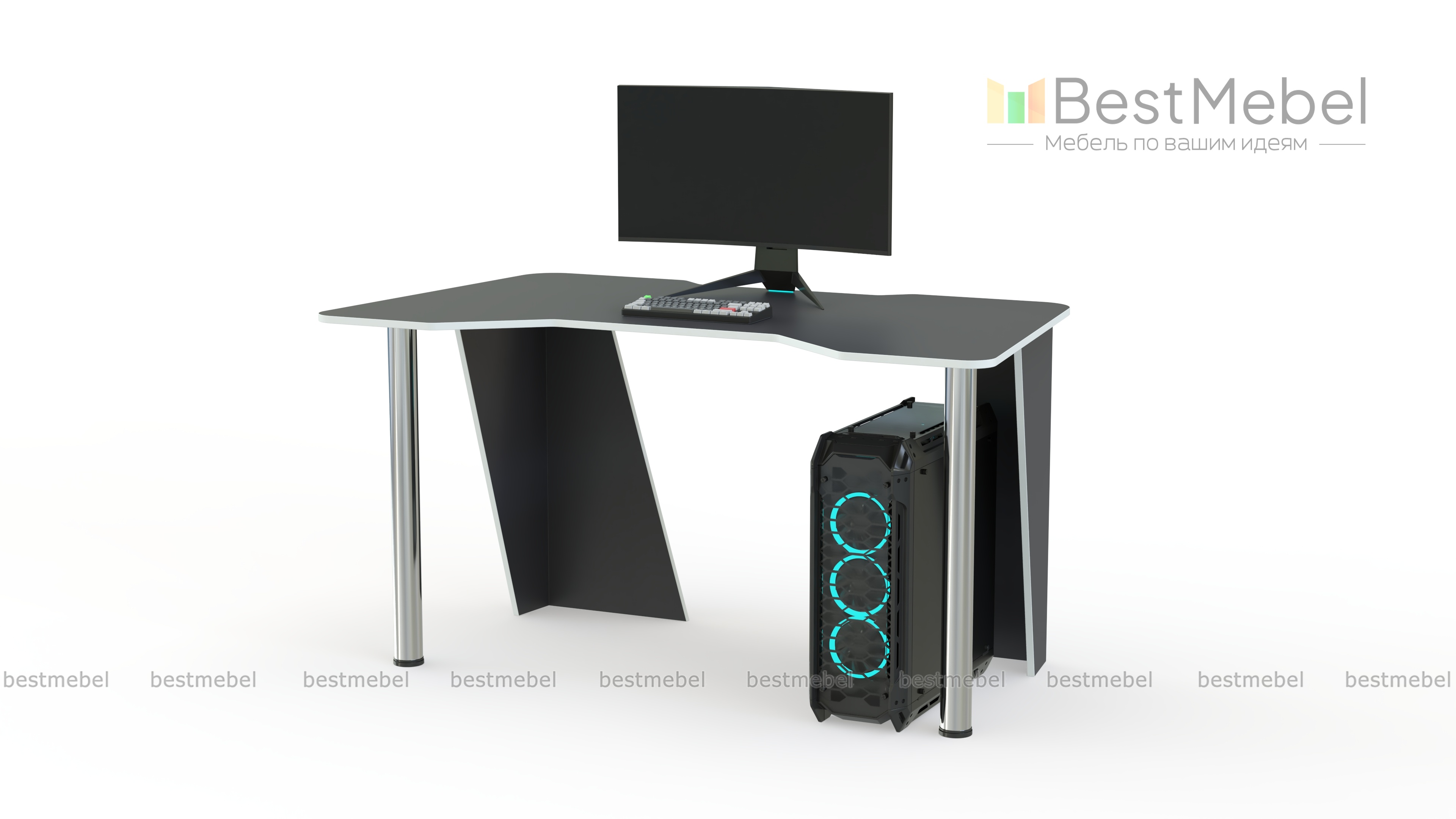 Геймерский стол Чесли 6 BMS с контрастной яркой кромкой эффектно дополнит современные интерьеры. Столешница с эргономичными вырезами в передней и задней части обеспечит комфортное положение во время работы и удобное размещение проводов. Устойчивость и легкость модели придают комбинированные опоры – угловые из ЛДСП и регулируемые хромированные. Купить геймерский стол Чесли 6 BMS для игровых сессий, работы или учебы вы сможете недорого в нашем интернет-магазине.