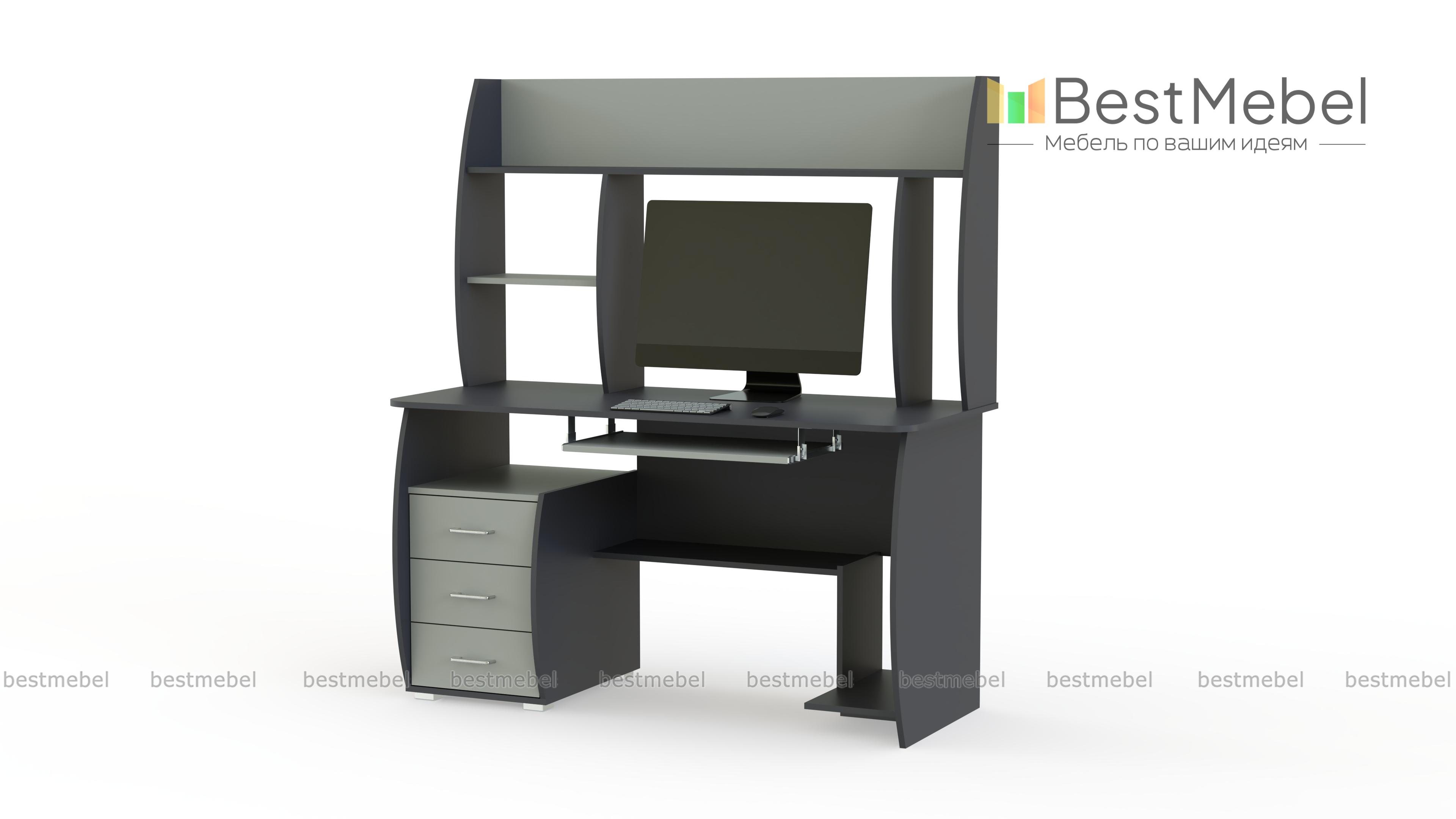 Компьютерный стол СК 16 BMS отличается функциональным и эргономичным дизайном. Конструкцией предусмотрены надстройка, позволяющая разместить рабочие материалы и сопутствующие аксессуары, а также полочка для клавиатуры, тумба с тремя выдвижными ящиками, нижняя полка и ниша под системный блок. Стильная особенность дизайна - чуть скругленные боковины и перегородки. Купить компьютерный стол СК 16 BMS вы сможете в нашем интернет-магазине, подобрав цвет и фурнитуру.