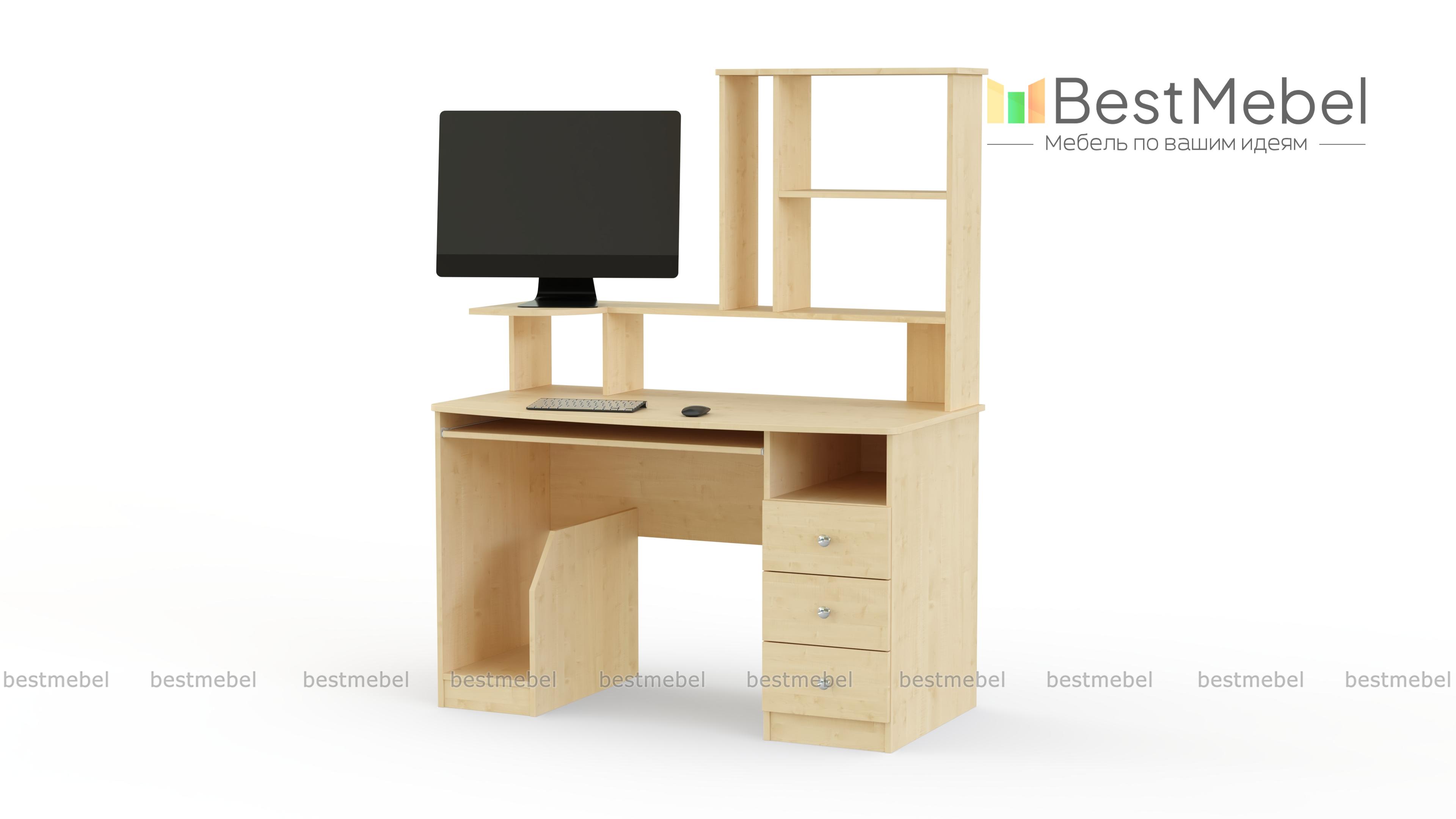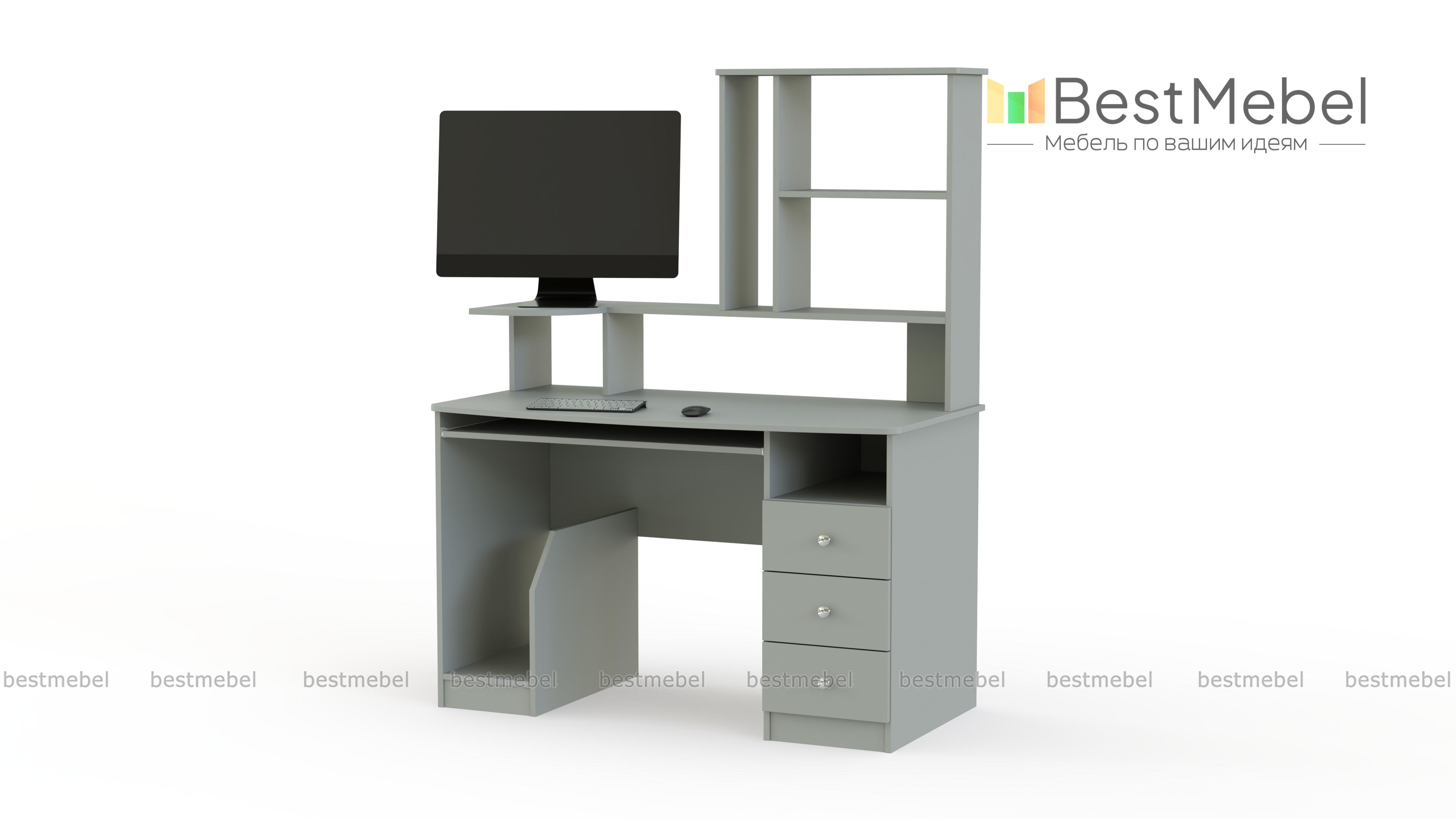 Стол компьютерный СК-002 BMS сочетает в себе простоту и эргономичность. Плавно вырезанная столешница дополнена выкатной полкой для клавиатуры и надстройкой с подставкой для монитора. Практичным решением для хранения канцелярских принадлежностей и бумаг станет тумба с нишей и тремя выдвижными ящиками, а для системного блока предназначена открытая секция сбоку. Купить стол компьютерный СК-002 BMS вы сможете в нашем интернет-магазине, подобрав гармонирующую с интерьером цветовую гамму.