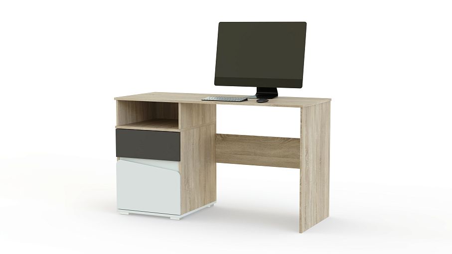 Стол письменный Алиса BMS поможет обустроить удобное рабочее место в комнате девочек. Модель оборудована просторной прямоугольной столешницей, на которой разместятся под рукой письменные принадлежности, и тумбой с нишей и двумя выдвижными ящиками разных размеров. Выполненный в светлых древесных тонах, столик декорирован контрастными вставками и гармонично впишется в современный детский интерьер. Купить стол письменный Алиса BMS приглашаем в наш интернет-магазин.