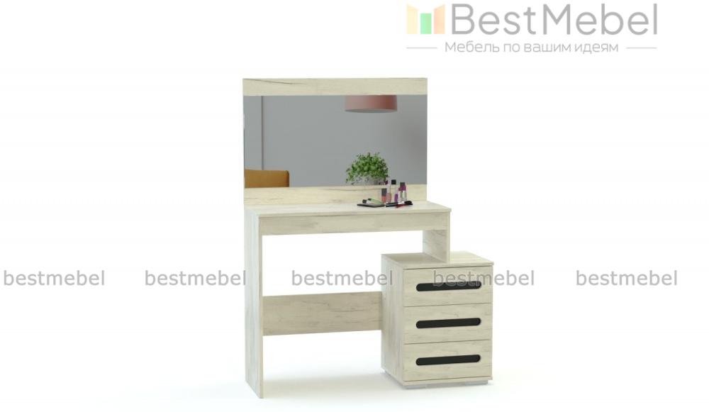 Туалетный столик Аризона BMS эффектно дополнит интерьер в современном стиле. Столик изготовлен в универсальном светлом оттенке, который великолепно сочетается с черной вставкой на фасадах выдвижных ящиков. Широкое зеркало станет незаменимым помощником в нанесении макияжа и уходе за волосами, а три вместительных ящика и широкая столешница без труда разместят декоративную косметику, аксессуары и приятные мелочи. Купить недорого с возможностью изменения размера и фурнитуры туалетный столик Аризона BMS приглашаем на наш сайт.