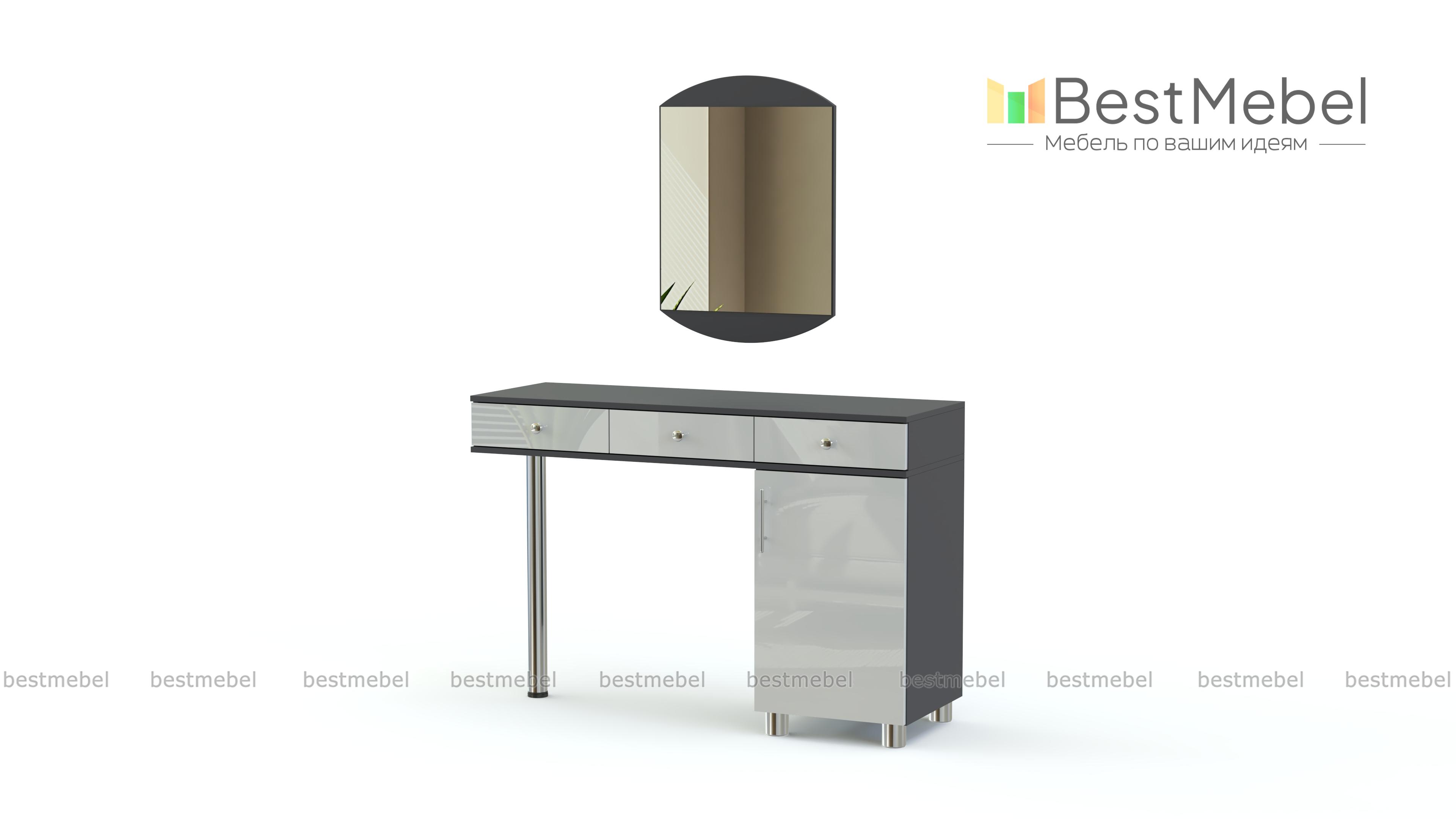 Туалетный столик Мелисса СТ 116 BMS отличается вместительностью и функциональностью, но при этом визуальной легкостью. Модель оборудована широкой столешницей, тремя выдвижными ящиками и распашным отделением с полкой, опираясь одной стороной на устойчивую хромированную опору. Элегантный вид придают столику матовые фасады и эффектное цветовое сочетание древесных оттенков. Купить туалетный столик Мелисса СТ 116 BMS по привлекательной цене приглашаем в наш интернет-магазин.