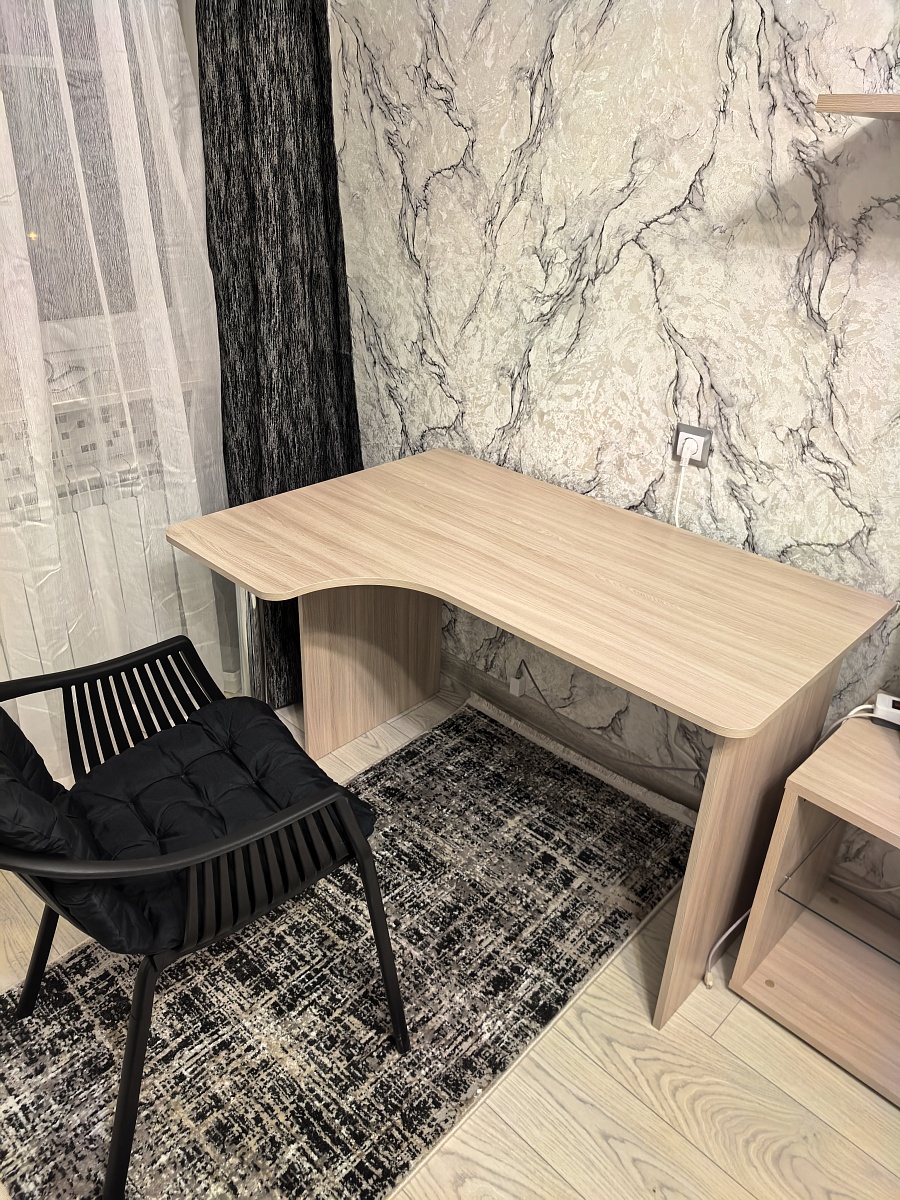 У стола не стандартные размеры, также были пожелания по отдельным элементам (один из которых вырез в задней части столешницы).Внешне очень понравился, хорошо вписался. Во качество на четверку, был небольшой скол в невидимой части стола и пара царапин с тыльной стороны - это не критично так как не видно. Так же в комплекте шли черные мебельные подпятники, хотя к такой расцветки - бежевые (может под цвет ручек ящика для контраста - не критично) Собирал сам, легко разобрался (есть электронный чертеж с описанием и номером детали) крепеж в полном комплекте.Хороший рабочий стол, по приемлемой цене. Спасибо!